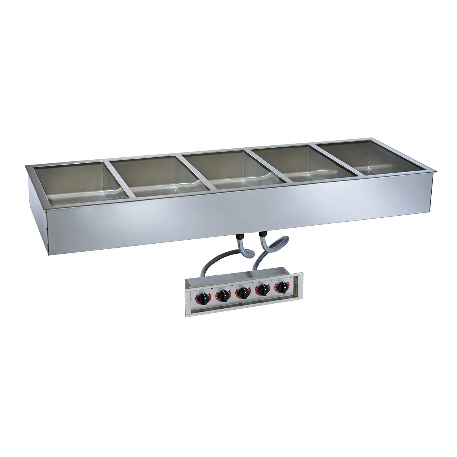 Mobilize your kitchen with the Alto-Shaam 500-HWILF/D4 Hot Food Well Unit. This drop-in electric unit is designed to meet the demands of a busy commercial restaurant. With a large flange and stainless steel construction, it is built to last and withstand the rigors of a professional kitchen. The unit can hold up to five 12" x 20" full-size pans (pans not included) in its 4-3/8" deep well, making it perfect for keeping a variety of dishes hot and ready to serve. Each well has its own adjustable thermostatic controller, allowing for precise temperature control. The Alto-Shaam 500-HWILF/D4 is also EcoSmart, meaning it is energy-efficient and environmentally friendly. With its cULus, UL EPH Classified, CE, IPX3, and TUV NORD certifications, you can trust in the quality and safety of this hot food well unit. Upgrade your kitchen with the Alto-Shaam 500-HWILF/D4 and experience the convenience and reliability it brings to your restaurant.