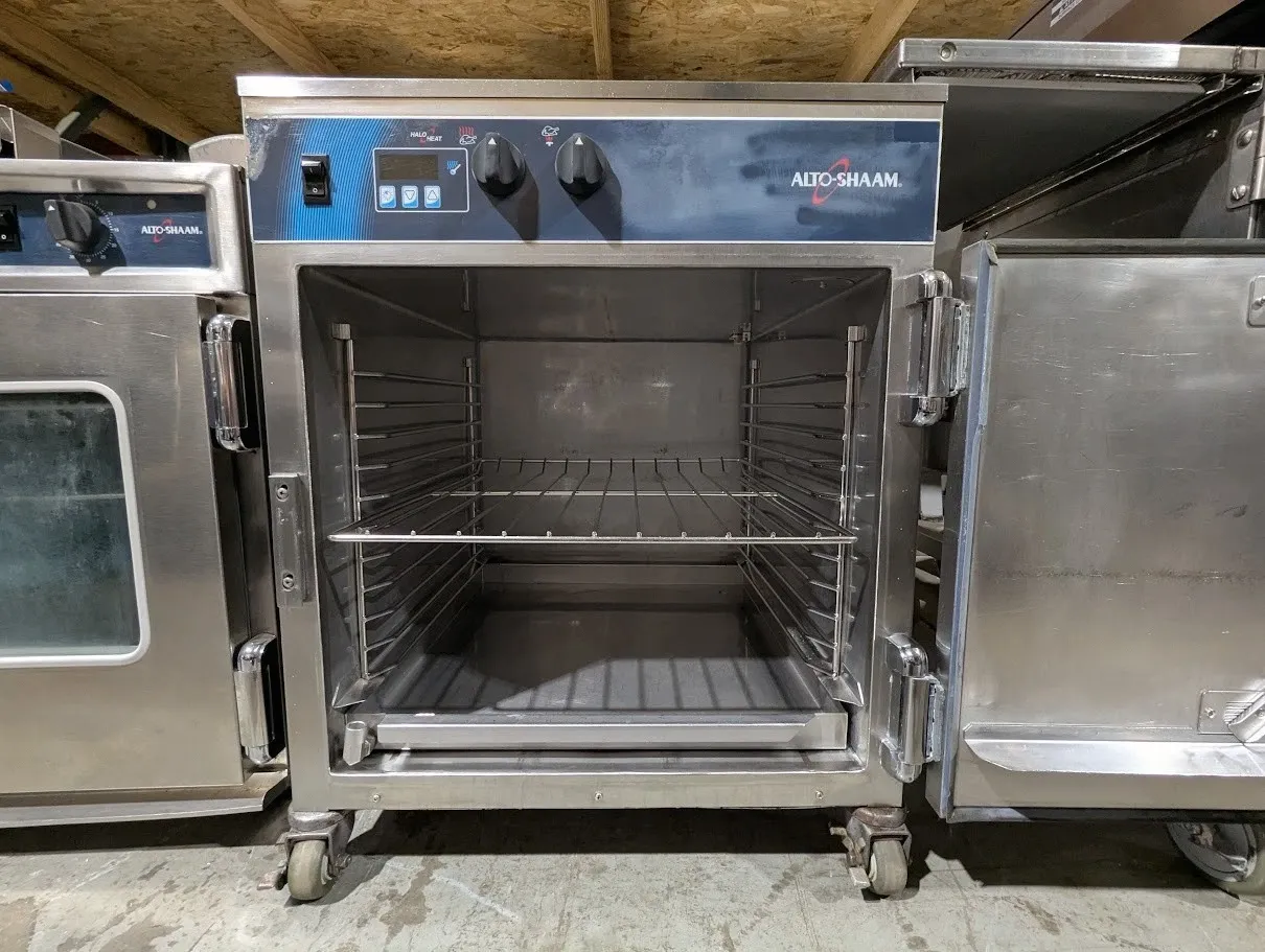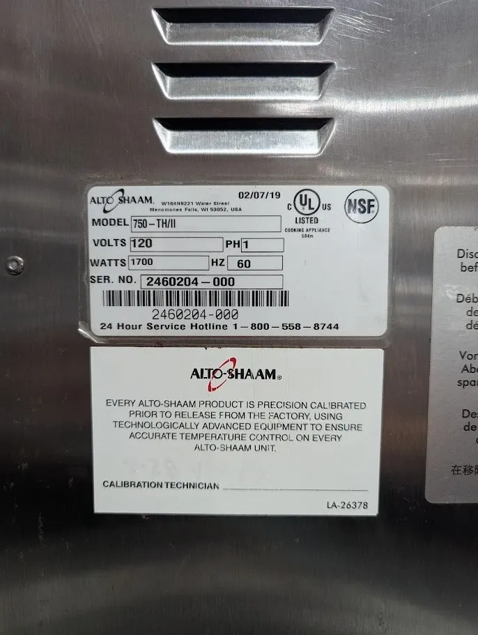 (USED) Alto-Shaam 750-TH/II Halo Heat® Cook & Hold Oven, electric, low temperature, 100 lb. capacity - fits (10) full-size 12x20" pans, simple controller with on/off power, stainless steel side racks, stainless steel wire shelves, exterior drip tray with removable pan, right-hinged solid door, 2-1/2" casters; 2 rigid, 2 swivel with brakes, EcoSmart®, cULus, UL EPH ANSI/NSF 4, CE, IPX3, TUV NORD, EAC, N11942, 120v/60/1ph, 1700W, SN# 2460204-000