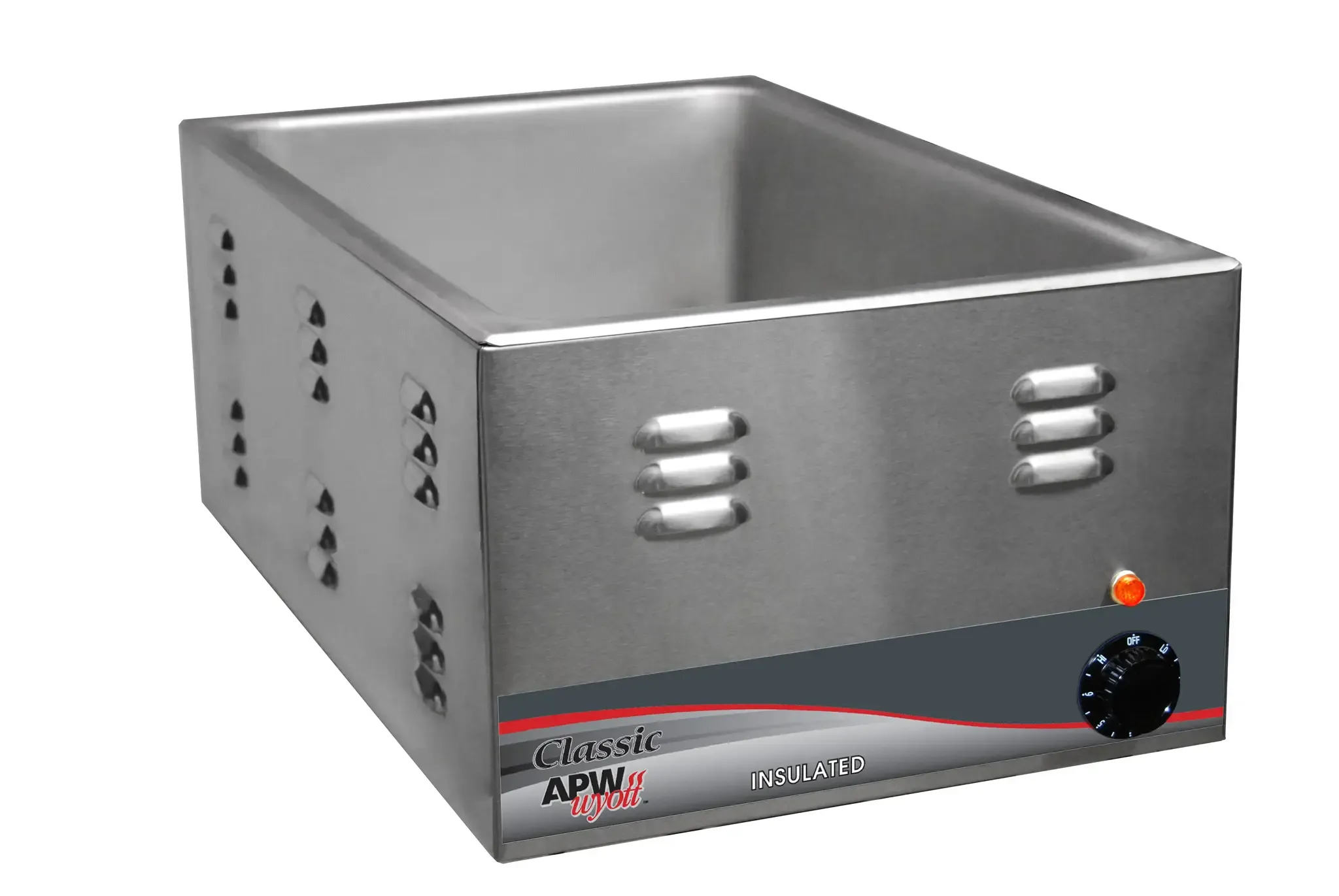 APW Wyott W-3Vi countertop warmer is perfect for holding pre-cooked foods at NSF safe temperatures. These units can be used with a variety of pan sizes or adapter plates for round insets. Serpentine shaped heating elements ensure heat is distributed evenly. 1-inch insulation keeps heat in the product and protects countertops. Thermostatic controls and knob guards are standard.