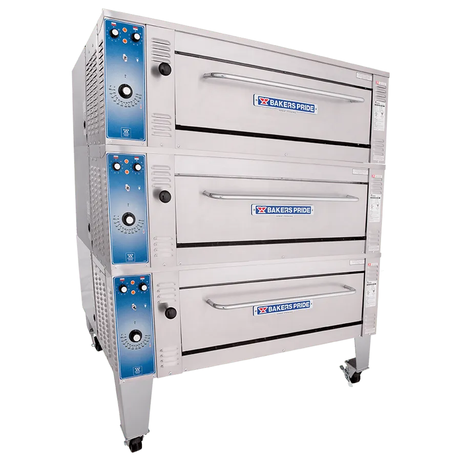 The Bakers Pride® model EP-3-8-3836 pizza oven is ideal for high-volume restaurants, offering the same durability and performance as our gas deck ovens with the low maintenance of an electrical system. This triple-stacked model has three Cordierite decks with 7” deck heights. The independently controlled, U-shaped heating elements on top and bottom allow for uniform temperatures and perfectly balanced baking. This model is constructed with heavy-duty, .25" angle iron frame, which is fully welded to allow for stacking.