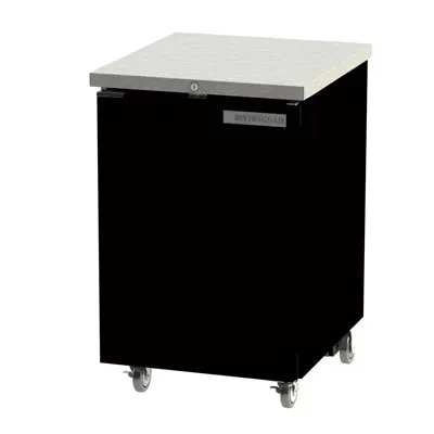 Ignite culinary passion with the Beverage Air BB24HC-1-B Back Bar Cabinet. This refrigerated storage cabinet is a must-have for any commercial restaurant. With its sleek black exterior finish and stainless steel top, it not only adds a touch of elegance to your establishment but also ensures durability and longevity. The one-section design provides ample storage space, with two epoxy coated steel shelves that can accommodate a 1/2 barrel keg and more. The solid door with a snap-in door gasket keeps your beverages cool and fresh, while the LED interior lighting allows for easy visibility. The rear-mounted self-contained refrigeration system ensures efficient cooling, and the storage above provides additional space for your restaurant's needs. Made in the USA and certified by cULus and UL-Sanitation, this Beverage Air Back Bar Cabinet is the perfect addition to any commercial kitchen.