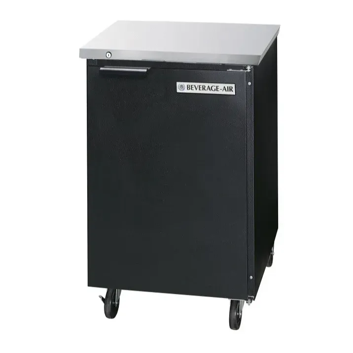 Empower your kitchen staff with the Beverage Air BB24HC-1-S Back Bar Cabinet. This refrigerated storage cabinet is designed to meet the needs of commercial restaurants, providing a reliable and efficient solution for keeping beverages chilled and easily accessible. With its one-section design and solid door, this cabinet offers ample storage space for up to a 1/2 barrel keg, ensuring that your bar is always fully stocked. The snap-in door gasket and LED interior lighting with a manual on/off switch add convenience and functionality to the unit. Made in the USA, this cabinet features a stainless steel top and exterior, as well as a galvanized interior for durability and easy cleaning. The rear-mounted self-contained refrigeration system with storage above ensures optimal cooling performance, while the use of R290 Hydrocarbon refrigerant makes it environmentally friendly. Trust Beverage Air to deliver high-quality refrigeration solutions for your commercial kitchen.