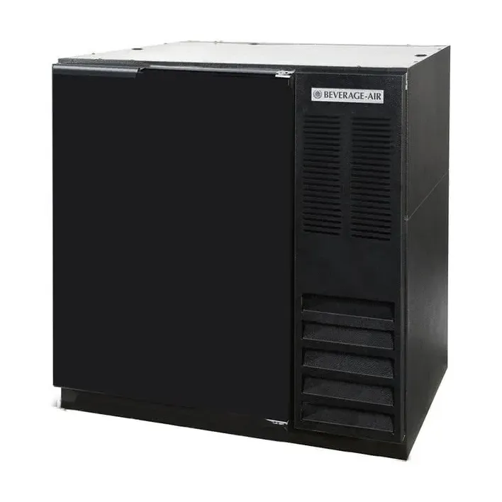 Transform your food service with the Beverage Air BB36HC-1-F-B Back Bar Cabinet. This refrigerated storage cabinet is designed specifically for commercial restaurant use, offering a spacious 8.31 cu. ft. capacity to accommodate your food and beverage needs. The cabinet features a solid door with a snap-in door gasket, ensuring a tight seal to keep your items fresh and cool. Inside, you'll find two epoxy coated steel shelves that provide ample storage space for your products. The LED interior lighting, with a manual on/off switch, illuminates the cabinet for easy visibility. The black exterior finish adds a sleek and professional look to your establishment, while the galvanized top and stainless steel interior with radius corners make cleaning a breeze. With side mounted self-contained refrigeration and storage above, this cabinet is both efficient and convenient. It also meets NSF Standard 7 for open food containers, ensuring the highest level of food safety. The Beverage Air BB36HC-1-F-B Back Bar Cabinet is a reliable and versatile addition to any commercial restaurant.