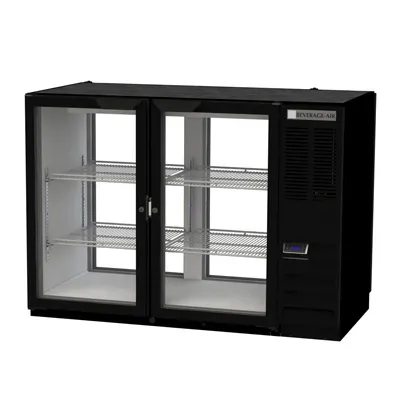 Fuel your restaurant's success with the Beverage Air BB48HC-1-G-PT-S Back Bar Cabinet. This refrigerated pass-thru unit is designed to meet the demands of a busy commercial kitchen. With its two-section design and 48" width, it offers ample storage space for your beverages and ingredients. The four glass doors, equipped with locks, not only provide easy access but also allow you to showcase your products to customers. Inside, you'll find four epoxy coated steel shelves that can accommodate two 1/2 barrel kegs. The LED interior lighting illuminates the contents, making it easy to find what you need. The galvanized steel interior with a stainless steel floor ensures durability and easy cleaning. With its right-mounted self-contained refrigeration and R290 Hydrocarbon refrigerant, this unit is energy-efficient and environmentally friendly. Trust Beverage Air, a reputable brand known for its quality and reliability. Invest in the BB48HC-1-G-PT-S Back Bar Cabinet and elevate your restaurant's efficiency and productivity.