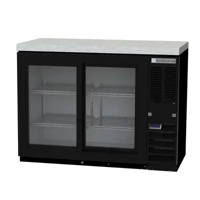 Discover kitchen perfection with the Beverage Air BB48HC-1-GS-S-27 Back Bar Cabinet. This refrigerated storage cabinet is designed to meet the needs of commercial restaurants, offering a spacious and efficient solution for storing beverages and ingredients. With its two-section design and 12.4 cu. ft. capacity, this cabinet provides ample space for up to two 1/2 barrel kegs, ensuring you always have a variety of drinks on hand for your customers. The cabinet features two locking sliding glass doors, allowing for easy access and visibility of the contents inside. The LED interior lighting illuminates the cabinet, making it easy to locate items even in low-light conditions. The stainless steel exterior with black frame doors not only adds a sleek and professional look to your kitchen but also ensures durability and easy cleaning. With its right-mounted self-contained refrigeration and R290 Hydrocarbon refrigerant, this cabinet is energy-efficient and environmentally friendly. Trust in the quality and reliability of Beverage Air, a trusted name in commercial refrigeration. Upgrade your restaurant's storage capabilities with the Beverage Air BB48HC-1-GS-S-27 Back Bar Cabinet.