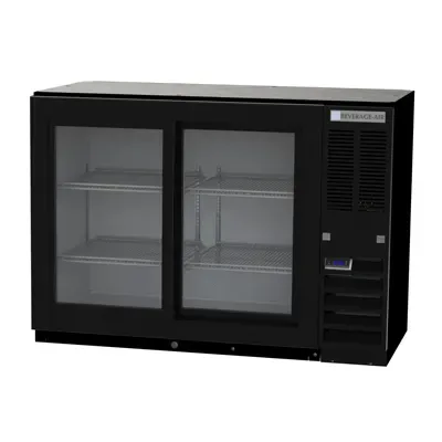 Introducing the Beverage Air BB48HC-1-GS-S Back Bar Cabinet, Refrigerated - the perfect solution to simplify restaurant operations. This refrigerated back bar storage cabinet is designed to meet the needs of commercial restaurants, offering a spacious 12.4 cu. ft. capacity to store and display your beverages. With two locking sliding glass doors and a snap-in door gasket, you can ensure the freshness and security of your products. The cabinet features four epoxy coated steel shelves, providing ample space for organizing and storing your items. The LED interior lighting with a manual on/off switch allows for easy visibility and accessibility. Made in the USA, this cabinet boasts a stainless steel exterior finish with black door frames, ensuring durability and a sleek appearance. With its right-mounted self-contained refrigeration and R290 Hydrocarbon refrigerant, this cabinet is energy-efficient and environmentally friendly. Simplify your restaurant operations with the Beverage Air BB48HC-1-GS-S Back Bar Cabinet, Refrigerated.