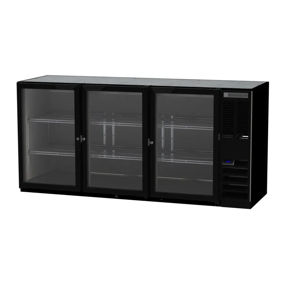 Unleash your inner chef with the Beverage Air BB72HC-1-FG-S Back Bar Cabinet. This refrigerated storage cabinet is perfect for commercial restaurant use, offering a spacious three-section design with a 72" width and 34" height. With a capacity of 19.92 cu. ft., it can accommodate up to three 1/2 barrel kegs, making it ideal for storing and serving a variety of beverages. The cabinet features three glass doors with locks, ensuring the security of your valuable stock. The LED interior lighting provides excellent visibility, while the stainless steel exterior finish adds a sleek and professional look to your establishment. The galvanized sub-top and stainless steel interior ensure durability and easy cleaning. This cabinet meets NSF-Standard 7 for open food containers, guaranteeing its suitability for commercial use. With its right-mounted self-contained refrigeration and R290 Hydrocarbon refrigerant, this cabinet is energy-efficient and environmentally friendly. Trust Beverage Air, a reputable vendor in the industry, and elevate your restaurant's beverage storage capabilities with the BB72HC-1-FG-S Back Bar Cabinet.