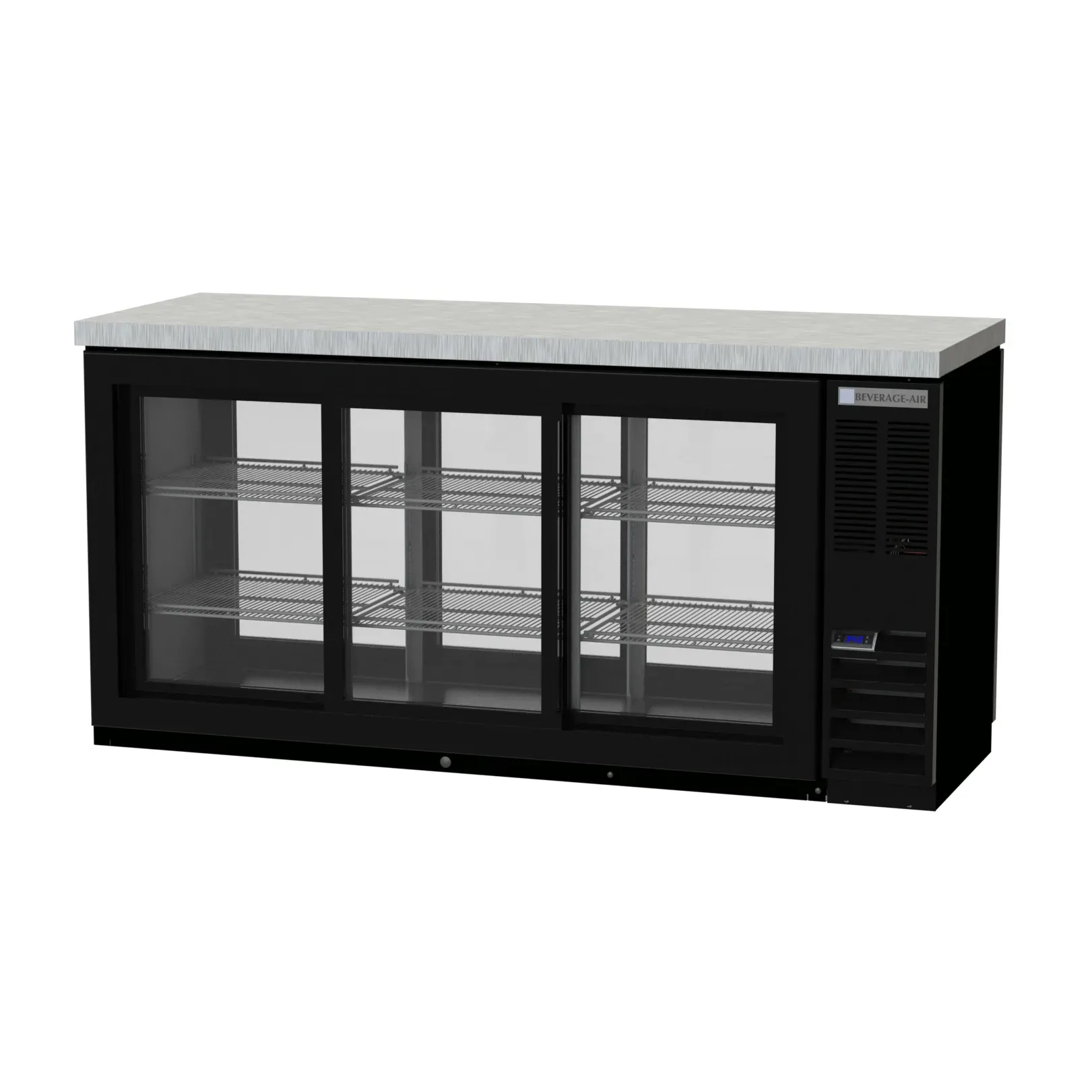 Elevate your cuisine with the Beverage Air BB72HC-1-GS-PT-B-27 Back Bar Cabinet. This refrigerated pass-thru storage cabinet is designed to meet the demands of a commercial restaurant. With its three-section design and 22.1 cu. ft. capacity, it offers ample space to store and display your beverages. The six locking sliding glass doors not only provide easy access but also ensure the security of your valuable stock. The cabinet features six epoxy coated steel shelves, allowing you to organize your products efficiently. The LED interior lighting with a manual on/off switch illuminates the cabinet, making it easy to locate items. The 2" stainless steel top provides a sturdy surface for preparing drinks or serving customers. The black exterior finish adds a touch of elegance to any restaurant decor. Made in the USA, this back bar cabinet is UL-Sanitation and UL EPH Classified, ensuring its quality and safety. Upgrade your restaurant with the Beverage Air BB72HC-1-GS-PT-B-27 Back Bar Cabinet and experience the convenience and efficiency it brings to your establishment.