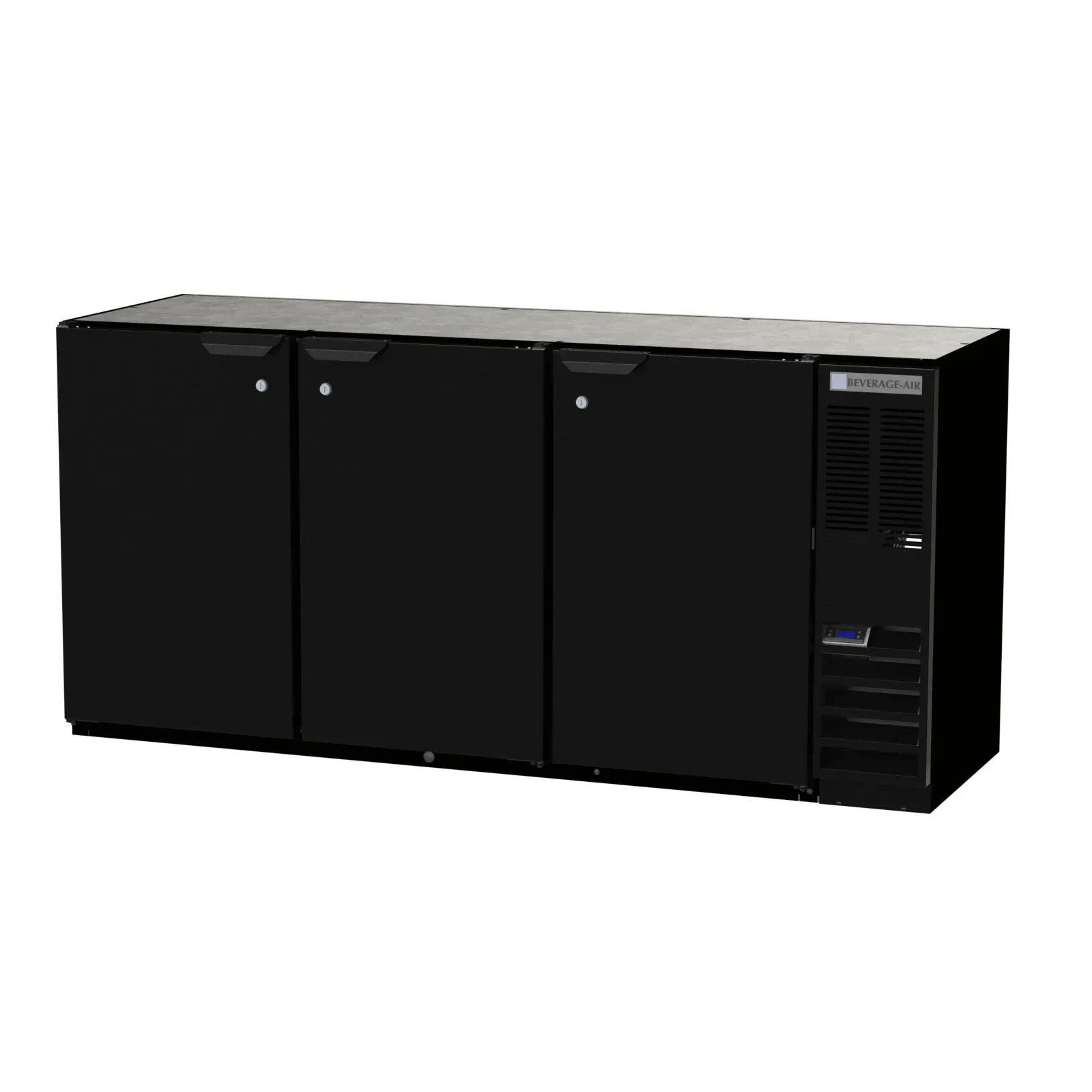 Serve with pride with the Beverage Air BB72HC-1-S Back Bar Cabinet. This refrigerated storage cabinet is perfect for commercial restaurants, offering a spacious three-section design with a 72" width and 34" height. With a generous 19.92 cu. ft. capacity, it can accommodate up to three 1/2 barrel kegs, ensuring you have plenty of cold beverages on hand for your customers. The cabinet features three solid doors with locks, providing secure storage for your valuable inventory. The snap-in door gasket ensures a tight seal, while the LED interior lighting allows for easy visibility of your products. Made in the USA, this cabinet boasts a stainless steel exterior finish and a galvanized steel interior with a stainless steel floor, ensuring durability and easy cleaning. With its right-mounted self-contained refrigeration and R290 Hydrocarbon refrigerant, this cabinet is energy-efficient and environmentally friendly. Trust Beverage Air for reliable and efficient refrigeration solutions in your commercial restaurant.