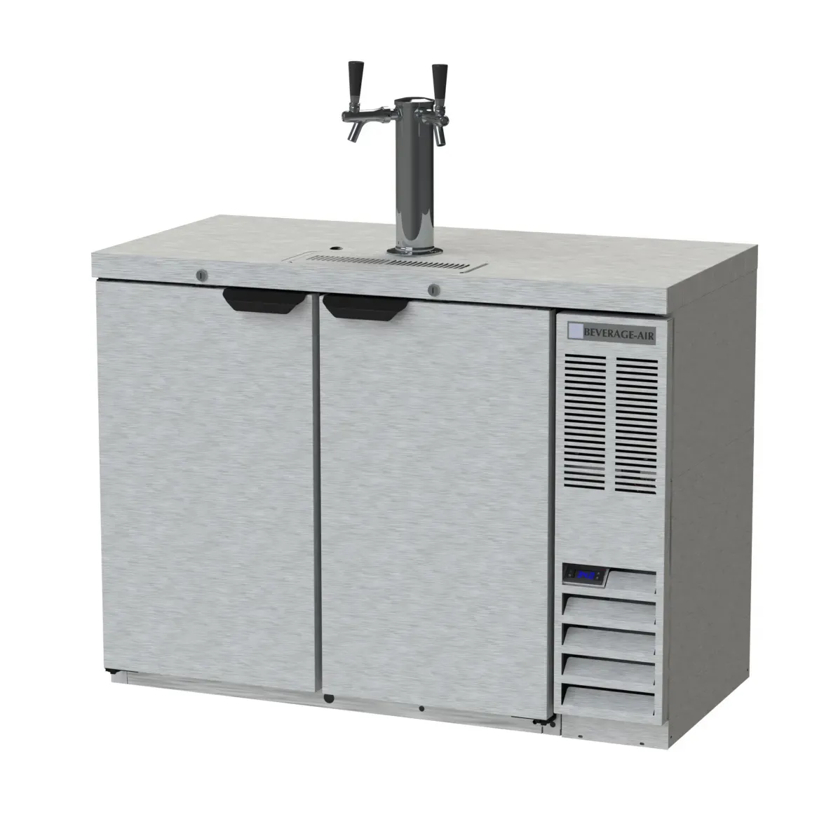 Unleash your inner chef with the Beverage Air DD48HC-1-S Draft Beer Cooler. This commercial-grade cooler is designed to meet the demands of a busy restaurant environment. With its 48" width and 24-1/2" depth, it offers ample space to store and chill your favorite draft beers. The cooler features two doors with locks, ensuring the security of your valuable kegs. It also comes with a dual faucet column, allowing you to serve multiple beers at once. The stainless steel exterior and top not only give the cooler a sleek and professional look but also make it durable and easy to clean. Inside, the galvanized interior with a reinforced stainless steel floor ensures long-lasting performance. The self-contained refrigeration system uses R290 Hydrocarbon refrigerant, making it energy-efficient and environmentally friendly. With its 1/4 HP compressor, this cooler is powerful enough to keep your beers cold even during the busiest hours. Trust Beverage Air, a reputable brand known for its quality and reliability. Upgrade your restaurant's beverage service with the Beverage Air DD48HC-1-S Draft Beer Cooler.