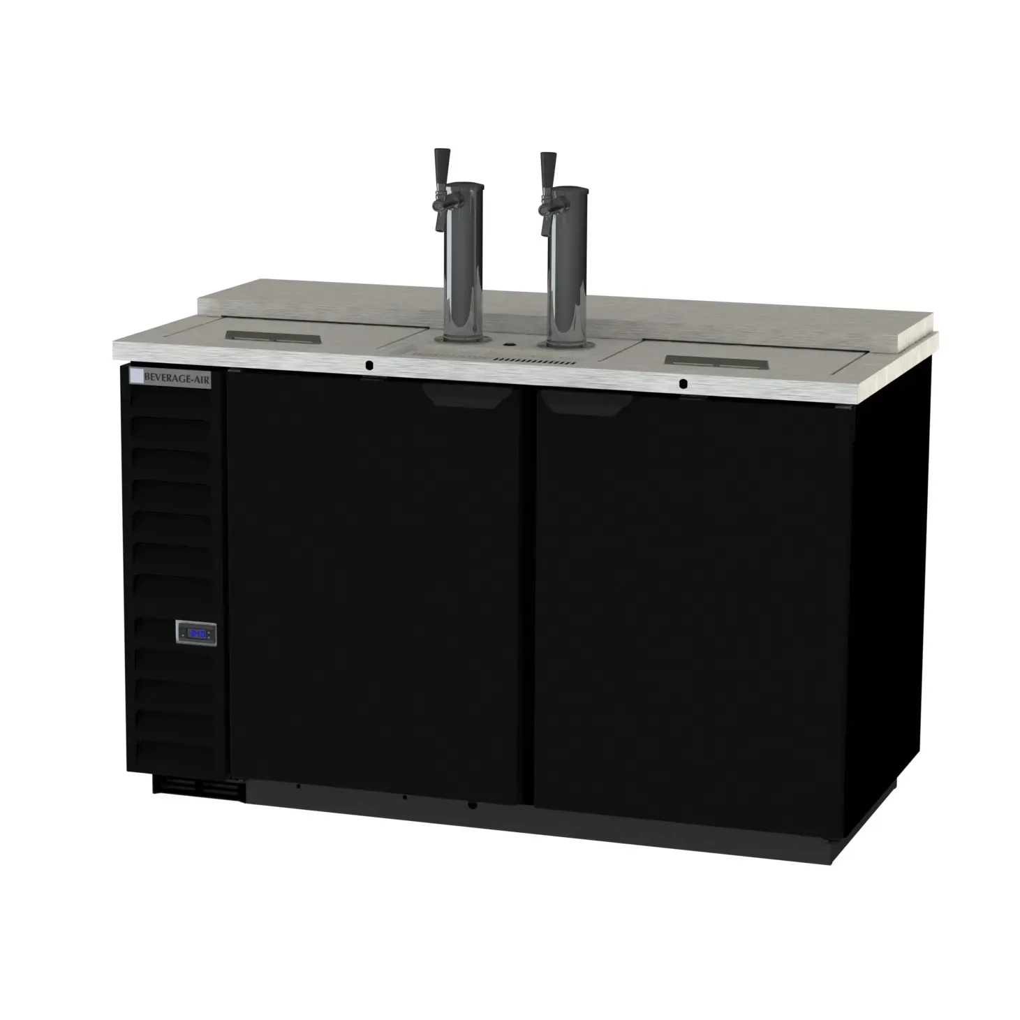 Fuel your restaurant's success with the Beverage Air DD58HC-1-C-B Draft Beer Cooler. This club-type cooler is designed to meet the needs of busy commercial restaurants. With its spacious 21.86 cu. ft. capacity, it can hold up to three kegs, ensuring you always have a variety of beers on tap for your customers to enjoy. The cooler features two doors and two slide-back lids, one with a shelf and one with a basket, providing convenient storage options for your bar essentials. The black exterior and stainless steel top give it a sleek and professional look that will enhance the aesthetics of your establishment. The galvanized interior with a reinforced stainless steel floor ensures durability and easy cleaning. Equipped with self-contained refrigeration and using R290 Hydrocarbon refrigerant, this cooler is energy-efficient and environmentally friendly. With its door locks and UL-Sanitation certification, you can trust that your beverages are stored securely and hygienically. Invest in the Beverage Air DD58HC-1-C-B Draft Beer Cooler and elevate your restaurant's beverage service to new heights.