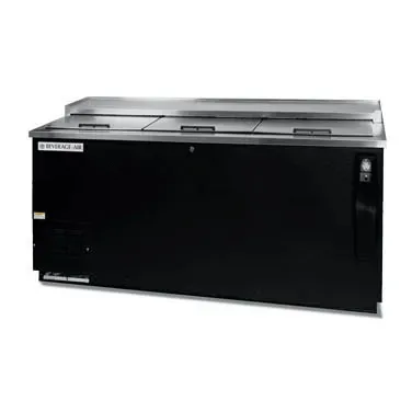 Culinary artistry redefined with the Beverage Air DW79HC-B-29 Bottle Cooler. This top-of-the-line cooler is designed to meet the needs of commercial restaurants, offering a spacious and efficient solution for keeping beverages frosty and refreshing. With its 80" width and 24.1 cu. ft. capacity, this cooler can hold up to 32 cases of 12 oz. bottles or 45-3/4 cases of 12 oz. cans, ensuring you never run out of your customers' favorite drinks. The deep well design and adjustable dividers allow for easy organization and access to your beverage selection. Equipped with electronic control and self-contained refrigeration, this cooler holds temperatures below 32 F, guaranteeing your beverages are always chilled to perfection. The black vinyl exterior and galvanized interior not only provide durability but also add a sleek and professional look to your establishment. Made in the USA and certified by cULus, UL EPH Classified, and UL-Sanitation, the Beverage Air DW79HC-B-29 Bottle Cooler is the ideal choice for any commercial restaurant looking to elevate their beverage service.