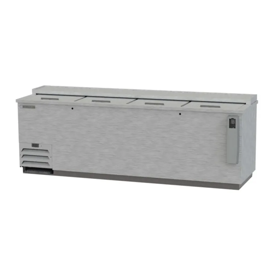 Culinary excellence in every dish starts with the right equipment, and the Beverage Air DW94HC-S Bottle Cooler is a must-have for any commercial restaurant. This flat top cooler is designed to keep your beverages perfectly chilled and easily accessible. With a spacious interior measuring 95"W x 26-5/8"D x 33-3/4"H, it can hold up to 39 cases of 12 oz. bottles or 55-3/4 cases of 12 oz. cans. The deep well design and sliding lids make it convenient to organize and retrieve your drinks. The adjustable epoxy coated wire dividers allow for flexible storage options. Made in the USA, this bottle cooler features a galvanized interior, stainless steel top and exterior, and a self-contained refrigeration system. It also comes with a bottle cap opener and cap catcher for added convenience. With its reliable performance and durable construction, the Beverage Air DW94HC-S Bottle Cooler is the perfect addition to any commercial kitchen.
