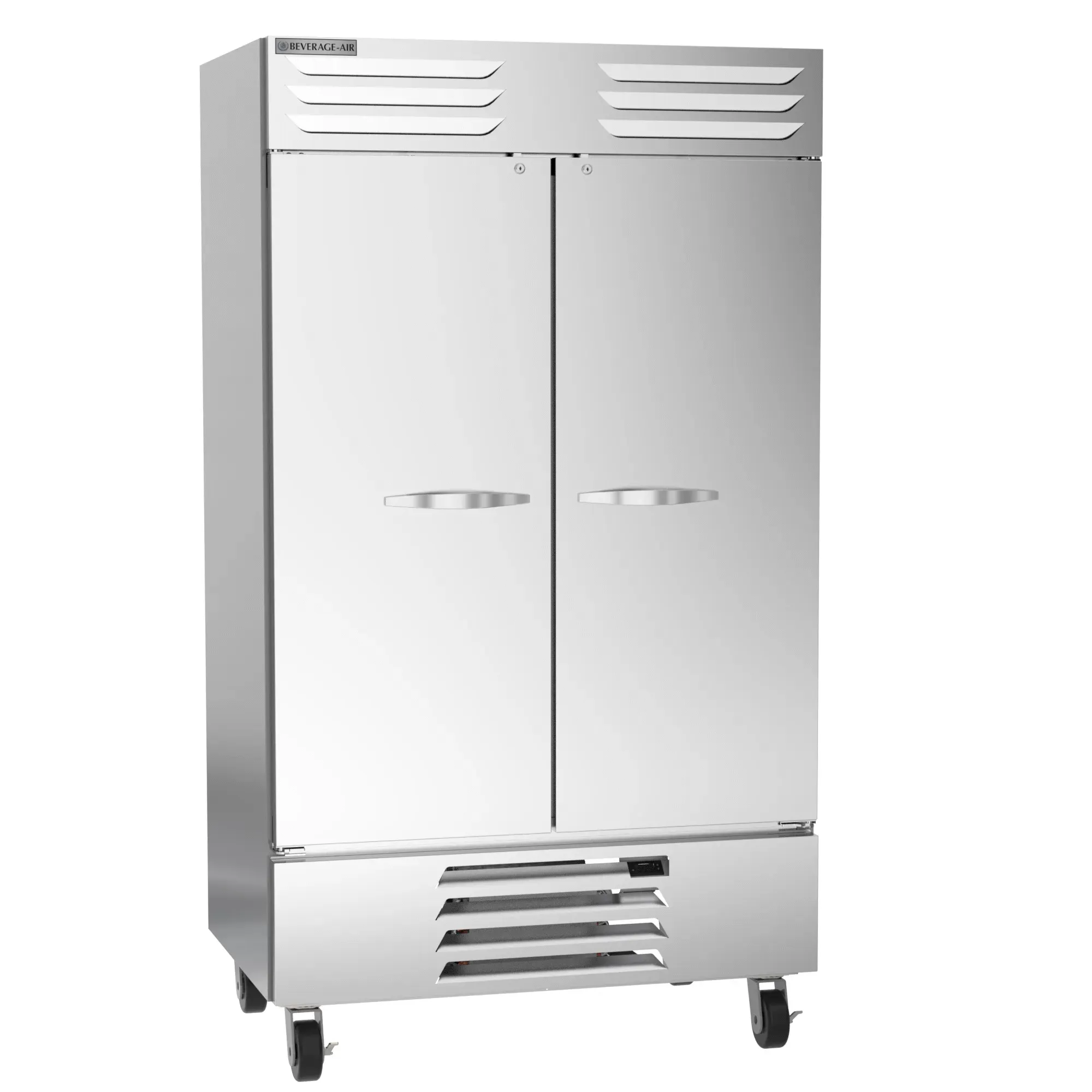 Cooking at its finest begins with the Beverage Air FB44HC-1S Freezer Reach-In. This top-of-the-line freezer is designed to meet the demands of a busy commercial restaurant. With a spacious 44 cu. ft. capacity, this two-section reach-in freezer provides ample storage space for all your frozen ingredients and prepared dishes. The electronic control ensures precise temperature management, while the automatic defrost feature saves you time and effort. The two lockable hinged solid doors keep your inventory secure, and the six adjustable wire shelves allow for flexible organization. The LED interior lighting illuminates the contents, making it easy to find what you need. Made in the USA with a stainless steel front and gray coated steel sides, this freezer is not only durable but also adds a touch of elegance to your kitchen. With bottom-mounted self-contained refrigeration and R290 Hydrocarbon refrigerant, this freezer is energy-efficient and environmentally friendly. Trust Beverage Air for reliable and high-quality refrigeration solutions.