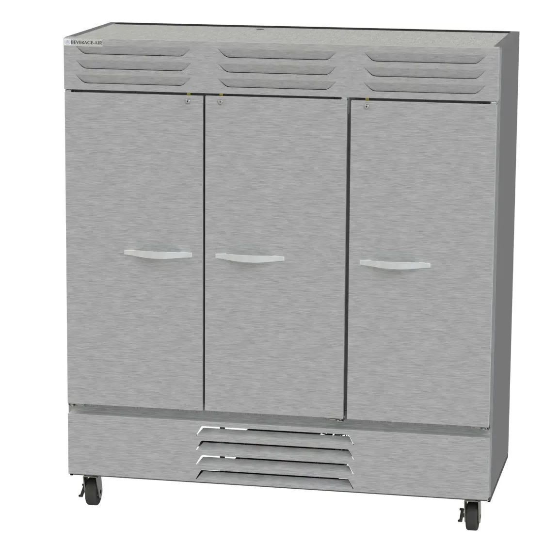Discover kitchen perfection with the Beverage Air FB72HC-5S Freezer, Reach-In. This top-of-the-line freezer is designed to meet the demanding needs of commercial restaurants. With its spacious three-section design and 68.5 cu. ft. capacity, you'll have plenty of room to store all your frozen goods. The electronic control allows for precise temperature management, ensuring that your food stays at the optimal temperature for freshness and quality. The three lockable hinged solid doors provide easy access while keeping your inventory secure. The nine adjustable wire shelves offer flexibility in organizing your products. The LED lighting illuminates the interior, making it easy to find what you need. The automatic defrost feature saves you time and effort, while the gray painted aluminum interior and stainless steel front ensure durability and easy cleaning. With bottom-mounted self-contained refrigeration and R290 Hydrocarbon refrigerant, this freezer is energy-efficient and environmentally friendly. Trust Beverage Air, a reputable brand known for its quality and reliability. Upgrade your kitchen with the Beverage Air FB72HC-5S Freezer, Reach-In.