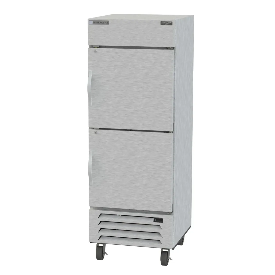 Equip your commercial kitchen with the Beverage Air HBF27HC-1-HS Freezer, Reach-In. This Horizon Series freezer is designed to meet the demands of a busy restaurant environment. With its spacious 26.57 cu. ft. capacity, you'll have plenty of room to store all your frozen ingredients and prepared dishes. The two right-hand hinged solid half doors make it easy to access your items, while the three adjustable shelves allow for flexible storage options. The electronic control and digital display ensure precise temperature management, while the LED interior lighting provides clear visibility of your inventory. The expansion valve technology and automatic defrost feature help maintain optimal performance and prevent ice buildup. Made in the USA with a stainless steel interior and exterior, this freezer is built to last. Trust Beverage Air for reliable, high-quality refrigeration solutions for your restaurant.