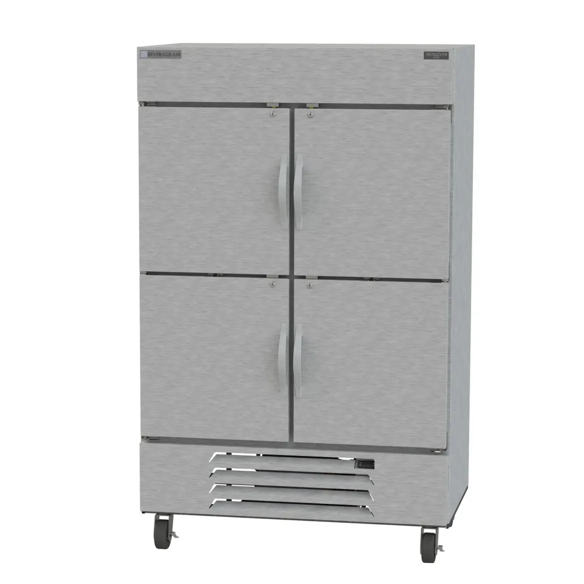 Unleash your kitchen's potential with the Beverage Air HBF49HC-1-HS Freezer, Reach-In. This Horizon Series freezer is designed to meet the demands of a busy commercial restaurant. With its two-section design and a spacious capacity of 46.2 cu. ft., this freezer provides ample storage space for all your frozen ingredients and products. The unit features two right-hand hinged solid half doors and two left-hand hinged solid half doors, allowing for easy access and organization. The six adjustable shelves provide flexibility in arranging your items. The electronic control and digital display make it easy to monitor and adjust the temperature settings. The LED interior lighting ensures excellent visibility, while the expansion valve technology and automatic defrost feature maintain optimal performance. Made in the USA, this freezer boasts a stainless steel interior and exterior, ensuring durability and easy cleaning. The bottom-mounted self-contained refrigeration system and R290 Hydrocarbon refrigerant contribute to energy efficiency and environmental sustainability. Trust Beverage Air to deliver reliable and high-quality refrigeration solutions for your commercial kitchen.
