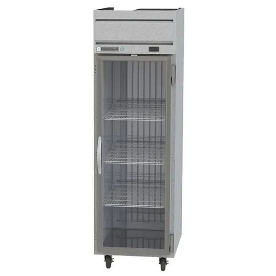 Mobilize your kitchen with the Beverage Air HF1HC-1G Freezer, Reach-In. This Horizon Series freezer is designed to meet the demands of a commercial restaurant, offering a spacious 21.06 cu. ft. capacity to store all your frozen goods. The right-hand hinged glass door provides easy access and allows you to showcase your products to customers. With three adjustable shelves, you can customize the interior space to accommodate different items. The electronic control and digital display make it easy to monitor and adjust the temperature, ensuring optimal storage conditions. The LED interior lighting illuminates the contents, making it easy to find what you need. Thanks to the expansion valve technology and automatic defrost feature, this freezer operates efficiently and requires minimal maintenance. The top-mounted self-contained refrigeration system ensures even cooling throughout the unit. Made in the USA with a stainless steel front, gray painted sides, and an aluminum interior, this freezer is built to last. Trust Beverage Air for reliable and high-quality refrigeration solutions.
