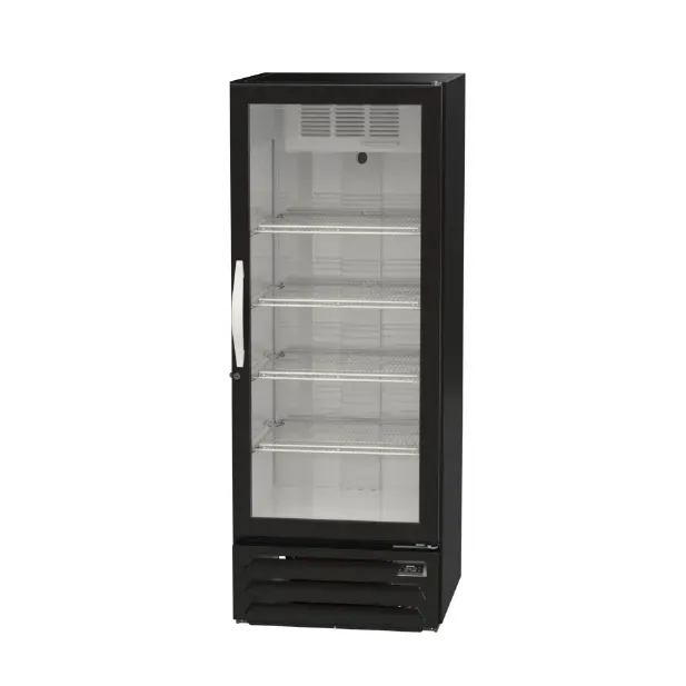 Revolutionize your cooking setup with the Beverage Air MMF12HC-1-B Freezer Merchandiser. This one-section reach-in freezer is designed to meet the demands of a commercial restaurant, offering a spacious 11.9 cu. ft. capacity to store and display your frozen goods. The triple pane hinged glass door not only provides a clear view of the contents but also helps to maintain the internal temperature. With electronic control and a digital display, you can easily monitor and adjust the settings for optimal performance. The four epoxy coated steel shelves provide ample storage space and are easy to clean. LED interior lighting illuminates the freezer, making it easy to locate items, while the lighted sign panel attracts customers' attention. The self-closing door with an automatic hold-open feature ensures convenience and energy efficiency. The anti-microbial door handles help maintain a hygienic environment. With bottom-mounted refrigeration and R290 Hydrocarbon refrigerant, this freezer is both efficient and environmentally friendly. Made in the USA and certified by cULus and UL-Sanitation, the Beverage Air MMF12HC-1-B Freezer Merchandiser is a reliable and high-quality addition to any commercial kitchen.