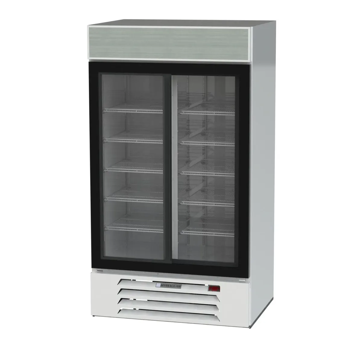 Maximize your food service potential with the Beverage Air MMR38HC-1-W Refrigerator Merchandiser. This two-section reach-in unit is designed to enhance your restaurant's efficiency and profitability. With a spacious 35.37 cu. ft. capacity, it offers ample storage space for your food and beverages. The two double pane self-closing sliding glass doors not only provide easy access to the contents but also help to maintain the desired temperature inside. The automatic hold-open feature ensures convenient loading and unloading of items. The anti-microbial door handles promote hygiene and prevent the spread of germs. The electronic control with a digital display allows for precise temperature management. The LED interior lighting illuminates the interior, making it easy to locate items. The lighted sign panel attracts customers' attention and boosts sales. With bottom-mounted self-contained refrigeration, this merchandiser is energy-efficient and easy to maintain. Made in the USA, this Beverage Air Refrigerator Merchandiser is a reliable and durable choice for your commercial restaurant.
