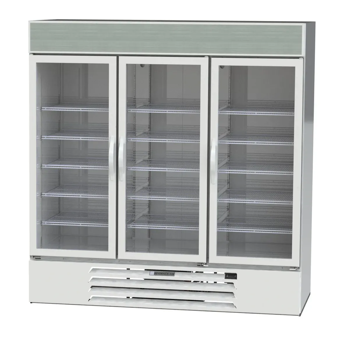 Equip your kitchen for success with the Beverage Air MMR72HC-1-W Refrigerator Merchandiser. This three-section reach-in unit is designed to meet the demands of a busy commercial restaurant. With its 68.93 cu. ft. capacity, you'll have plenty of space to store and display your products. The three double pane hinged glass doors not only provide easy access but also showcase your items to attract customers. The electronic control and digital display make it easy to monitor and adjust the temperature, ensuring that your food stays fresh and safe. The 15 epoxy coated steel shelves offer ample storage and are easy to clean. The LED interior lighting illuminates the contents, making it easy for customers to see what's available. The self-closing doors with automatic hold-open feature and anti-microbial door handles add convenience and hygiene. With bottom-mounted refrigeration and R290 Hydrocarbon refrigerant, this unit is energy-efficient and environmentally friendly. Trust Beverage Air, a reputable brand known for its quality and durability. Upgrade your restaurant with the Beverage Air MMR72HC-1-W Refrigerator Merchandiser and watch your business thrive.