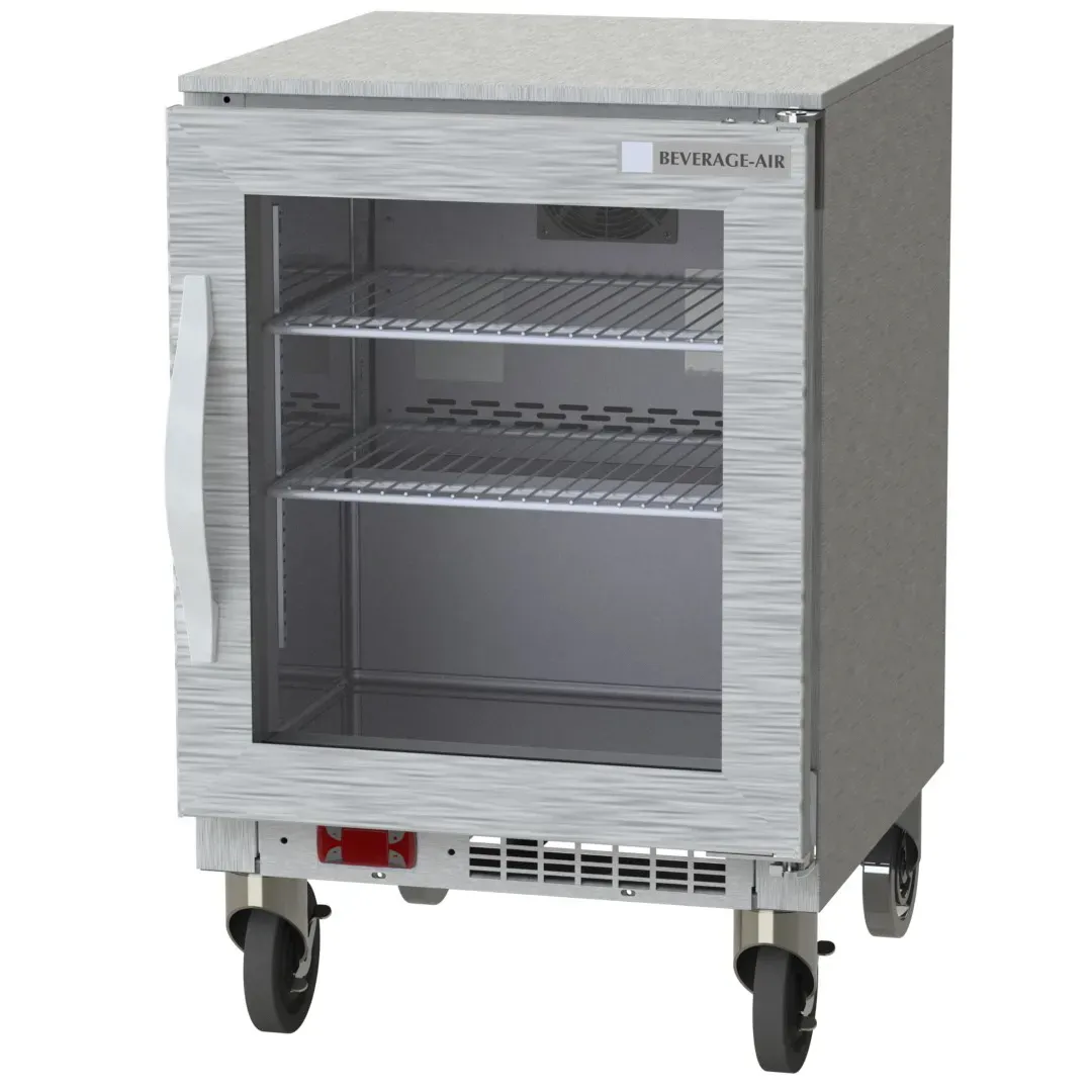 Master the art of flavor with the Beverage Air UCF20HC-25-15 Freezer. This undercounter ice cream freezer is perfect for commercial restaurant use, offering a compact design with a 2.34 cu. ft. capacity. The shallow depth allows for easy placement in tight spaces, while the glass door provides visibility and easy access to your frozen treats. The stainless steel top with turned down edges adds durability and a sleek look, while the stainless steel exterior ensures long-lasting performance. With two shelves and an aluminum interior, you have plenty of storage space for your ice cream and other frozen goods. The rear-mounted self-contained refrigeration system, powered by a 1/4 HP motor and R290 Hydrocarbon refrigerant, ensures efficient cooling and temperature control. Trust in the quality and reliability of Beverage Air, a trusted name in commercial refrigeration. Elevate your dessert offerings and keep your customers coming back for more with the Beverage Air UCF20HC-25-15 Freezer.