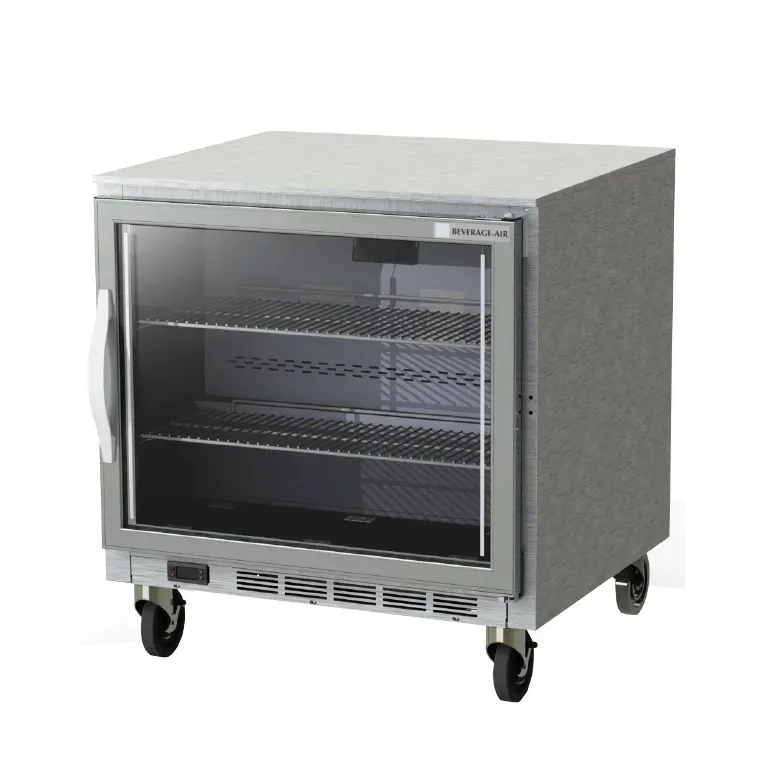 Cook with precision using the Beverage Air UCF32AHC-25 Freezer. This undercounter reach-in freezer is designed to meet the demands of a commercial restaurant kitchen. With its one-section design and 7.2 cu. ft. capacity, it provides ample storage space for your frozen ingredients. The glass door allows you to easily see what's inside without opening it, helping to maintain the desired temperature. The two shelves offer convenient organization options, while the stainless steel top with turned down edges provides a durable workspace. The LED lighting illuminates the interior, making it easy to locate items. Made in the USA, this freezer is built to last and is UL-Sanitation and UL EPH Classified for added peace of mind. With its rear-mounted self-contained refrigeration and R290 Hydrocarbon refrigerant, this freezer is energy-efficient and environmentally friendly. Upgrade your kitchen with the Beverage Air UCF32AHC-25 Freezer and experience the benefits of reliable, high-quality refrigeration.