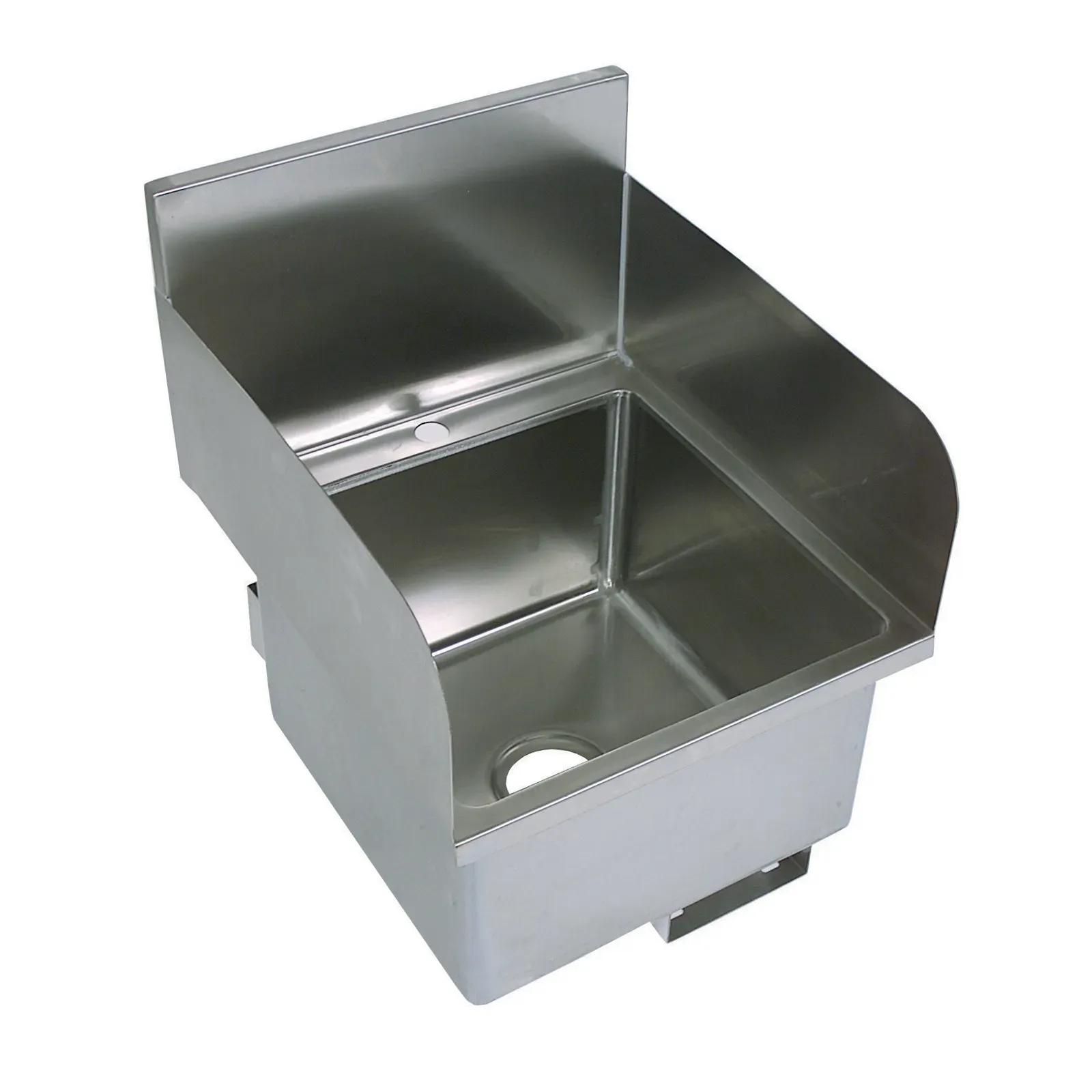 Achieve kitchen supremacy with the BK Resources, BKHS-D-1616-SS Hand Sink. This wall-mounted sink is designed to meet the rigorous demands of a commercial restaurant kitchen. The 16" wide x 16" front-to-back x 10" deep bowl provides ample space for handwashing, ensuring proper hygiene practices are maintained. The single deck mount faucet hole allows for easy installation of a faucet (sold separately), while the side splashes on the left and right prevent water from splashing onto surrounding surfaces. The knee valve bracket adds convenience and efficiency, allowing hands-free operation. Constructed from 16/304 stainless steel, this hand sink is durable and resistant to corrosion, making it perfect for high-traffic environments. The 11" high backsplash provides additional protection against splashes and spills. With NSF certification, you can trust the quality and safety of this BK Resources hand sink. Upgrade your restaurant kitchen with this reliable and functional hand sink.