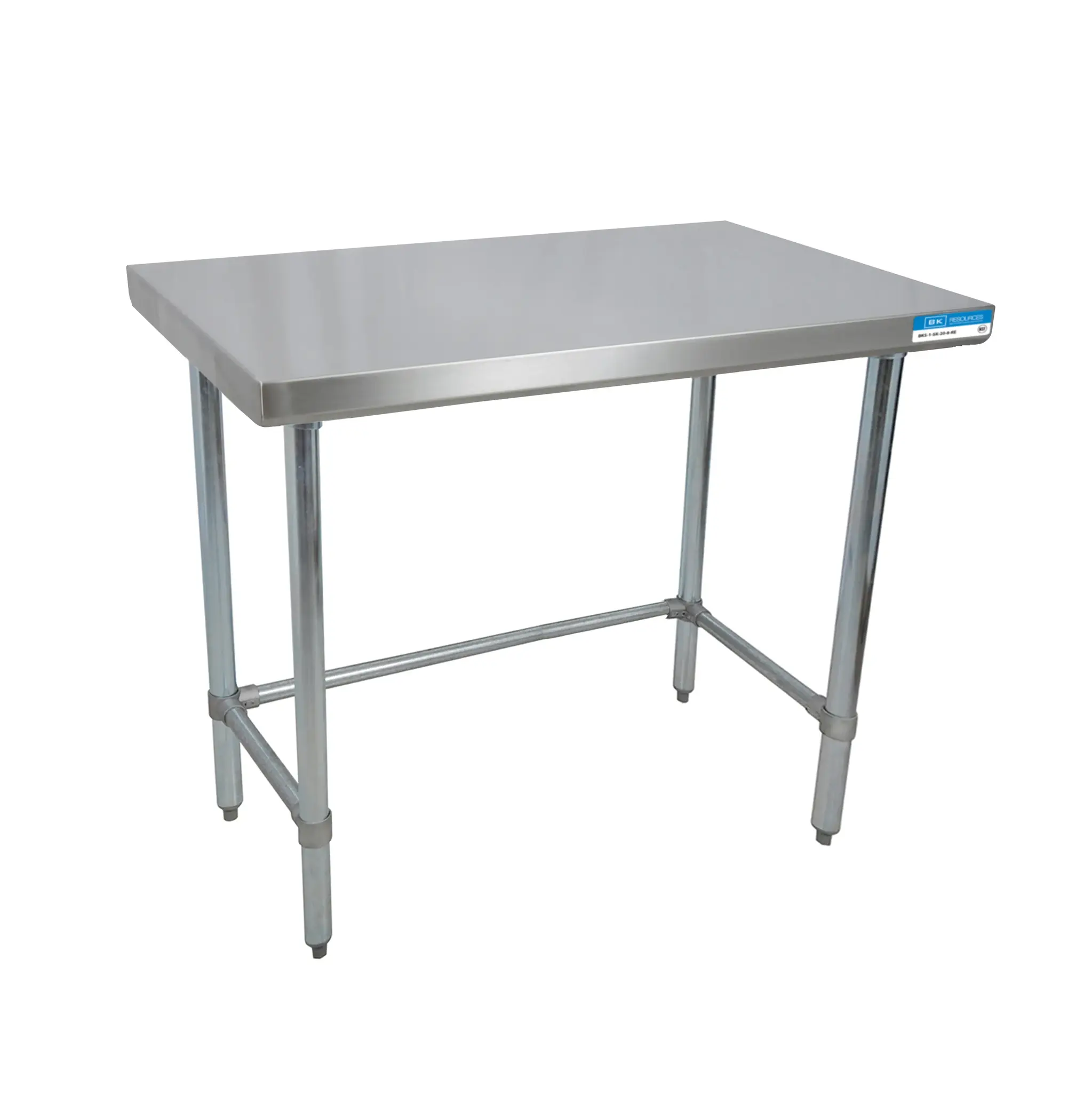 Experience kitchen innovation with the BK Resources CVTOB-7236 Work Table. This versatile work table is designed to meet the demands of a commercial restaurant setting. With its 16/304 stainless steel flat top, reinforced with three 5" C channels, it provides a durable and spacious workspace for food preparation. The open base, along with stainless steel side and rear bracing, ensures stability and strength. The four 1-5/8" diameter stainless steel legs are adjustable, allowing you to customize the height to suit your needs. The stainless steel feet are also adjustable, ensuring stability on any surface. This work table is NSF certified, guaranteeing its quality and suitability for use in a commercial kitchen. Whether you need a sturdy surface for chopping vegetables or a place to assemble dishes, the BK Resources CVTOB-7236 Work Table is the perfect addition to your restaurant kitchen.