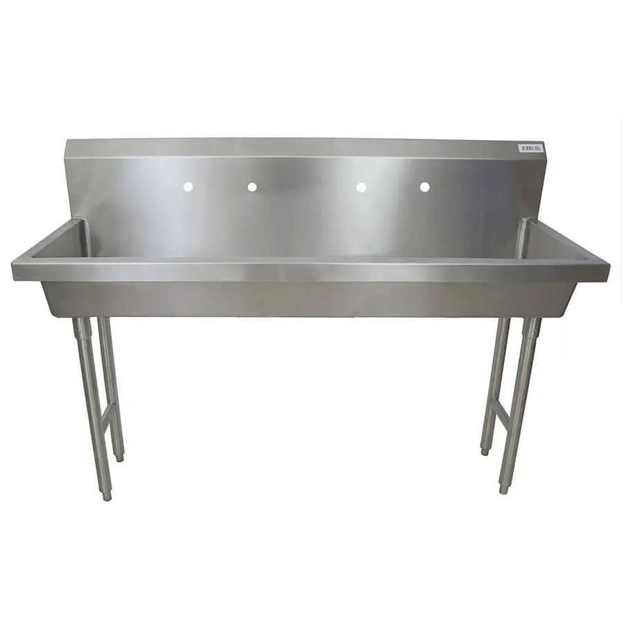 Culinary artistry redefined with the BK Resources MSHS-60F2 Handwash Sink. This freestanding sink is designed to meet the rigorous demands of a commercial restaurant setting. With two station handwash capabilities, it allows for efficient and convenient handwashing for your staff. The sink features two sets of 8" OC splash mount faucet holes, ensuring easy installation of faucets. The 60"W x 19-7/8" front-to-back x 8" deep bowl provides ample space for washing hands and utensils. Made of 14/304 stainless steel, this sink is durable and resistant to corrosion, perfect for withstanding the demands of a busy kitchen. The 18 gauge stainless steel legs and supports provide stability and strength. Additionally, the sink is NSF certified, ensuring it meets the highest standards of cleanliness and sanitation. Upgrade your restaurant's handwashing capabilities with the BK Resources MSHS-60F2 Handwash Sink.