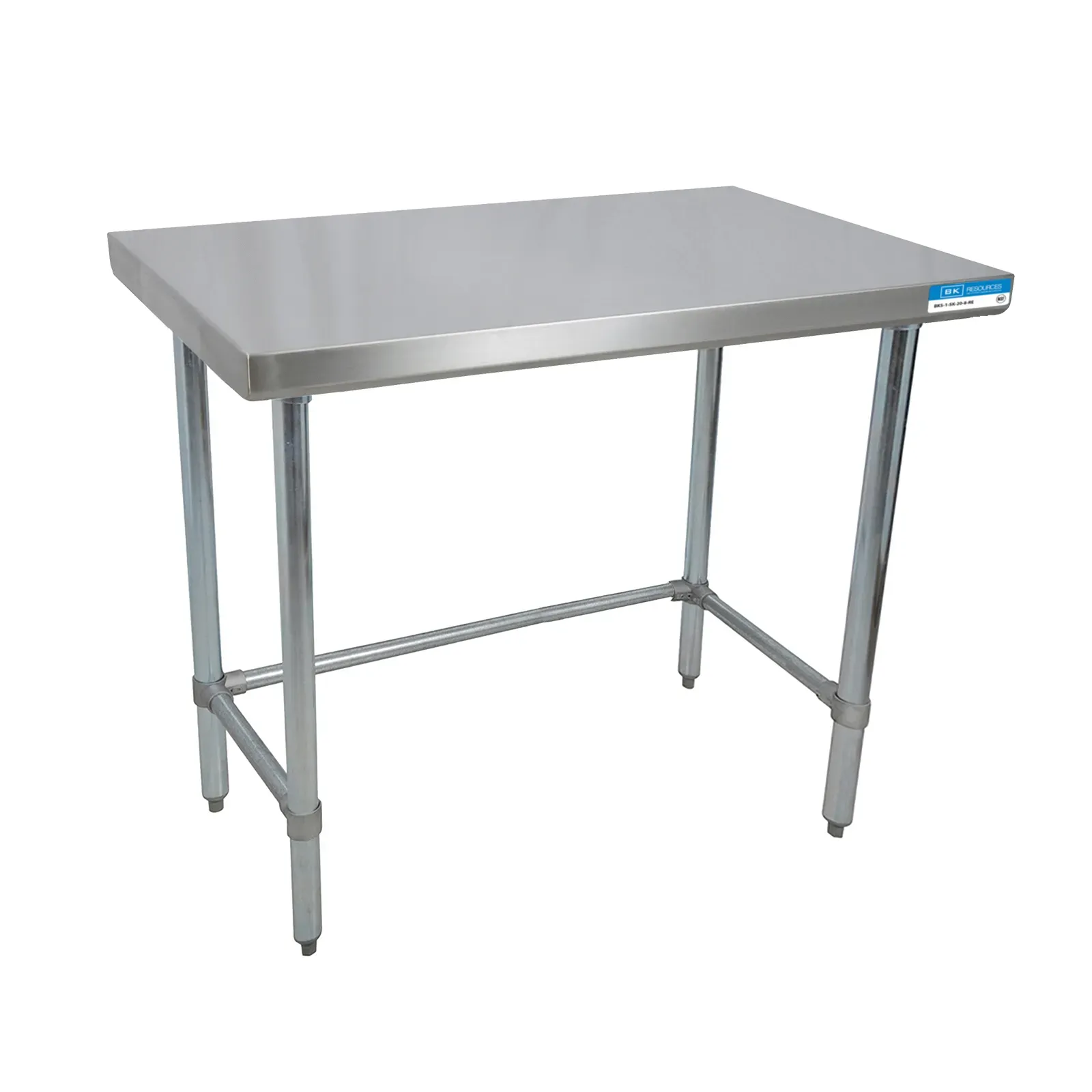Upgrade your restaurant kitchen with the BK Resources SVTOB-4830 Work Table. This durable and versatile work table is designed to meet the demands of a busy commercial restaurant. The 48"W x 30"D stainless steel top provides ample space for food preparation, while the turndown edges on all sides ensure a clean and safe working environment. Reinforced with channels and supported by 1-5/8" dia. stainless steel legs, this work table is built to withstand heavy use. The open base with stainless steel side and rear bracing adds stability and strength. The adjustable bullet feet allow for easy leveling on uneven surfaces. With its NSF certification, you can trust that this work table meets the highest standards of cleanliness and sanitation. Upgrade your kitchen with the BK Resources SVTOB-4830 Work Table and experience the durability and functionality it brings to your restaurant.