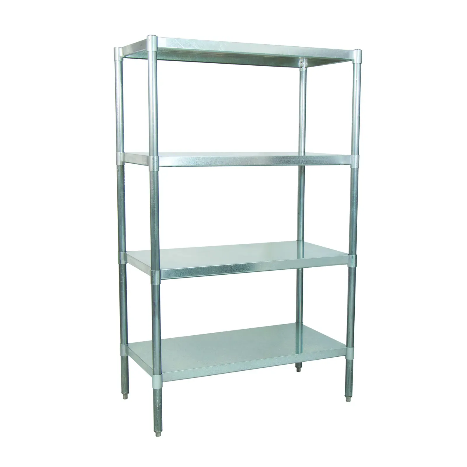 Boost your restaurant's performance with the BK Resources VSU6-4324 Shelving Unit. This solid flat shelving unit is designed to optimize storage space and enhance organization in your commercial kitchen. With its generous dimensions of 43"W x 24"D x 72"H, this unit provides ample room for all your dry storage needs. The four adjustable shelves allow you to customize the unit to accommodate items of various sizes, ensuring maximum efficiency. Made with galvanized shelves and legs, this shelving unit is not only durable but also resistant to corrosion, making it perfect for the demanding environment of a restaurant kitchen. The adjustable bullet feet provide stability and allow for easy leveling on uneven surfaces. Whether you need to store ingredients, equipment, or supplies, the BK Resources VSU6-4324 Shelving Unit is the ideal solution for any commercial restaurant.