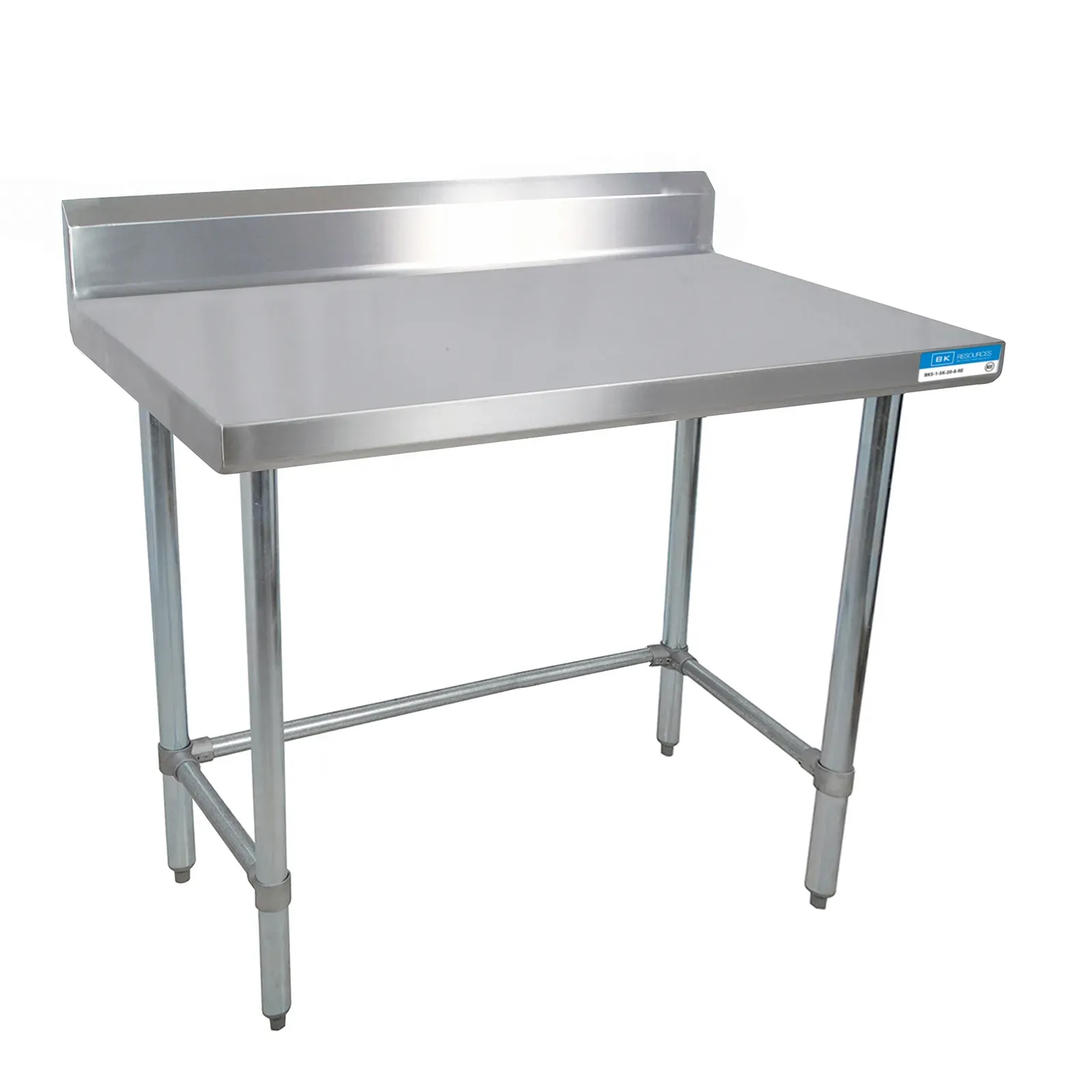 Unleash your inner chef with the BK Resources, VTTR5OB-3024 Work Table. This stainless steel work table is designed to meet the demands of a commercial restaurant kitchen. The 18/430 stainless steel top with turndown edges on the front and sides provides a durable and easy-to-clean surface for food preparation. The table is reinforced with channels and features a 5" backsplash to prevent spills and messes. The open base with galvanized side and rear bracing ensures stability and strength, while the 1-5/8" dia. galvanized legs can be adjusted to the desired height. The high impact corrosion resistant feet add further durability and convenience. This work table is NSF approved, guaranteeing its quality and suitability for use in a commercial kitchen. Upgrade your restaurant kitchen with the BK Resources, VTTR5OB-3024 Work Table and experience the difference in efficiency and functionality.