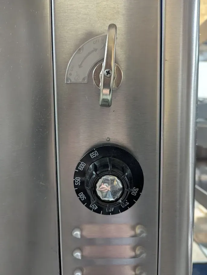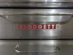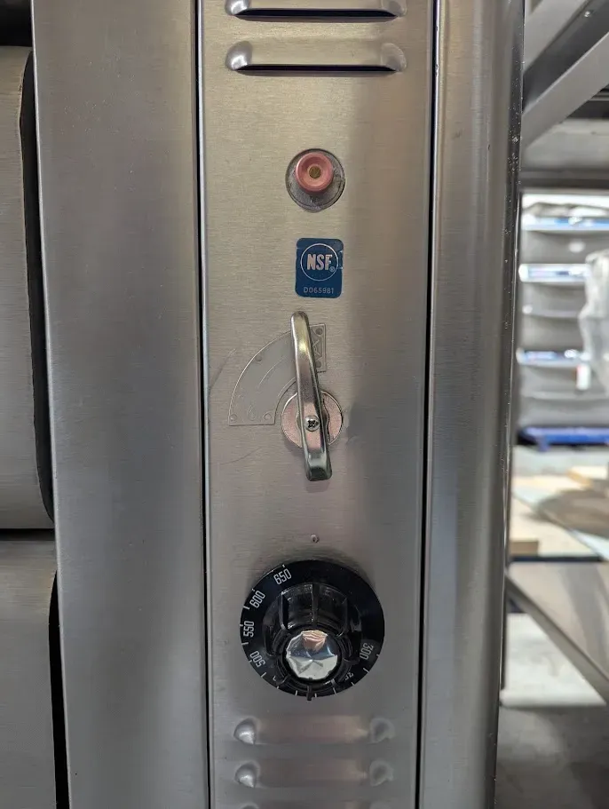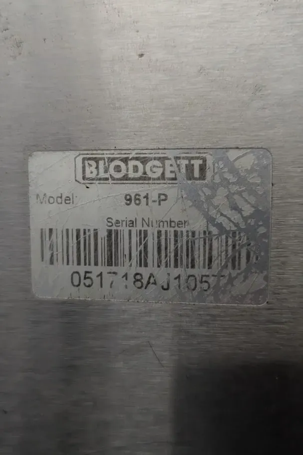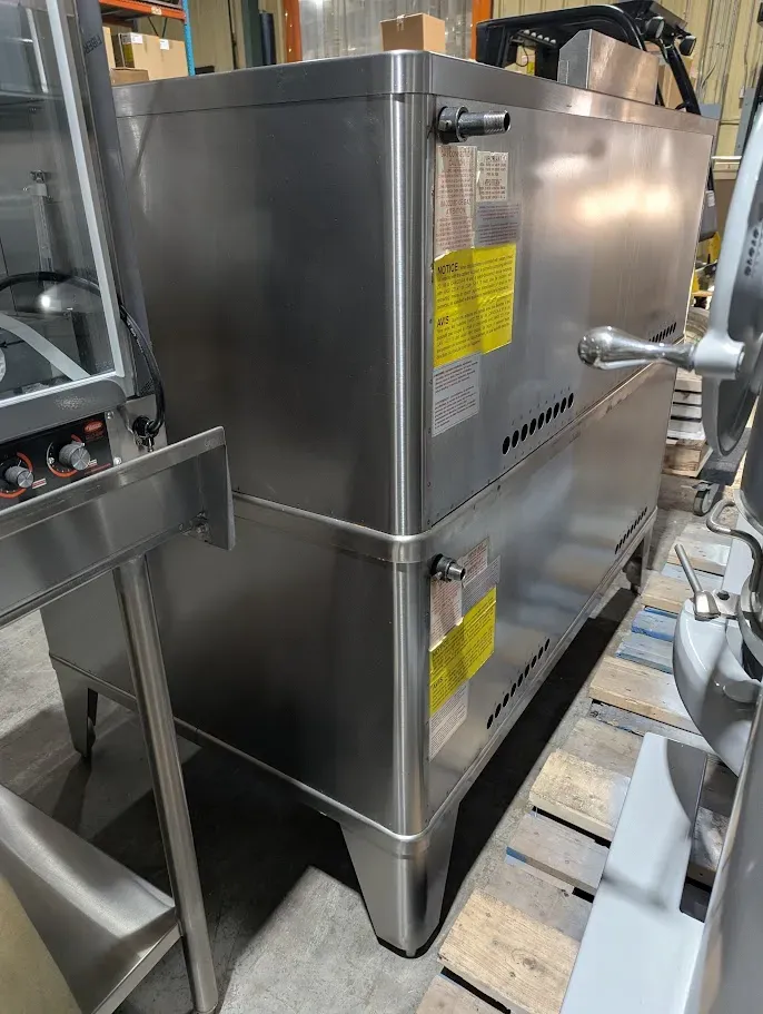 (REFURBISHED) Blodgett 961-P Double Pizza Oven, deck-type, gas, 42"W x 32"D deck interior, (2) 7" high sections, (FDTH) 300-650°F mechanical thermostat, QHT Rokite deck, counter-balanced doors with concealed hinges, full angle iron frame, crown angle trim, stainless steel top, front, sides and back, 19" stainless steel legs, flue connector, 50,000 BTU per section, cETLus, NSF, CE SN# 051718AJ105T