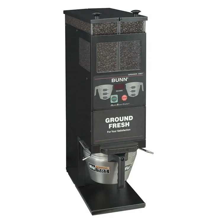 Transform your commercial restaurant into a hub of efficiency with the Bunn 33700.0001 Coffee Grinder. This high-volume capacity grinder is designed to streamline your coffee brewing process, ensuring a consistent and delicious cup every time. With dual 6 lb. hoppers and three batch sizes per hopper, you can easily accommodate different brewing needs. The smart funnel allows for a wireless brewer-grinder interface, eliminating the need for manual adjustments. The 3/4 HP motor and 1080 watts of power ensure fast and efficient grinding, while the black decor adds a sleek and professional touch to your establishment. UL, cULus, and ETL certified, this grinder meets the highest safety standards. Upgrade your coffee preparation with the Bunn 33700.0001 Coffee Grinder and experience the convenience and quality it brings to your commercial restaurant.