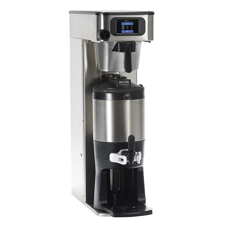 Elevate the experience with essentials. Introducing the Bunn 53300.0101 Coffee Brewer for Thermal Server, designed to enhance your commercial restaurant's coffee brewing process. This platinum edition tall coffee brewer is a game-changer, offering advanced features and functionality. With pre-infusion and pulse brew functions, it ensures optimal extraction and flavor for every cup. The SmartWAVE sprayhead technology evenly saturates the coffee grounds, resulting in a rich and aromatic brew. The electronic funnel lock and 4.3" color touchscreen provide intuitive control and convenience. This brewer is compatible with 2.5 to 3.8 liter airpots or 3.8 to 5.7 liter baseless Thermofresh servers, allowing you to serve a large number of customers efficiently. The wireless interface and USB programming enable seamless customization and monitoring. With its stainless steel finish, energy-saving mode, and UL and NSF certifications, this coffee brewer is a reliable and durable addition to any commercial restaurant. Elevate your coffee experience with the Bunn 53300.0101 Coffee Brewer for Thermal Server.
