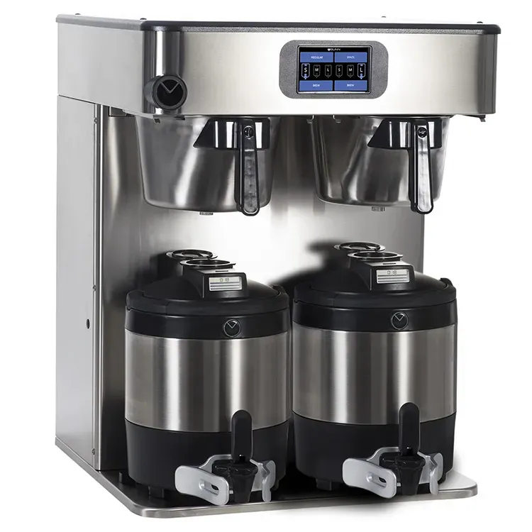 Set standards with a variety of equipment with the Bunn, 53400.0100, Coffee Brewer for Thermal Server. This platinum edition coffee brewer is designed for commercial restaurant use, delivering exceptional performance and convenience. With its pre-infusion and pulse brew functions, it ensures optimal extraction and flavor for every cup. The brewer can accommodate 2.5 to 3.8 liter airpots or 3.8 to 5.7 liter baseless Thermofresh servers, making it versatile for different serving needs. The 5.6-gallon tank and electronic funnel lock ensure a continuous supply of hot coffee, while the SmartWAVE sprayhead technology evenly saturates the coffee grounds for a rich and flavorful brew. The 4.3" color touchscreen and wireless interface provide easy programming and monitoring, while the energy saver mode helps reduce energy consumption. With its sleek stainless steel finish and durable construction, this coffee brewer is a reliable and stylish addition to any commercial restaurant.