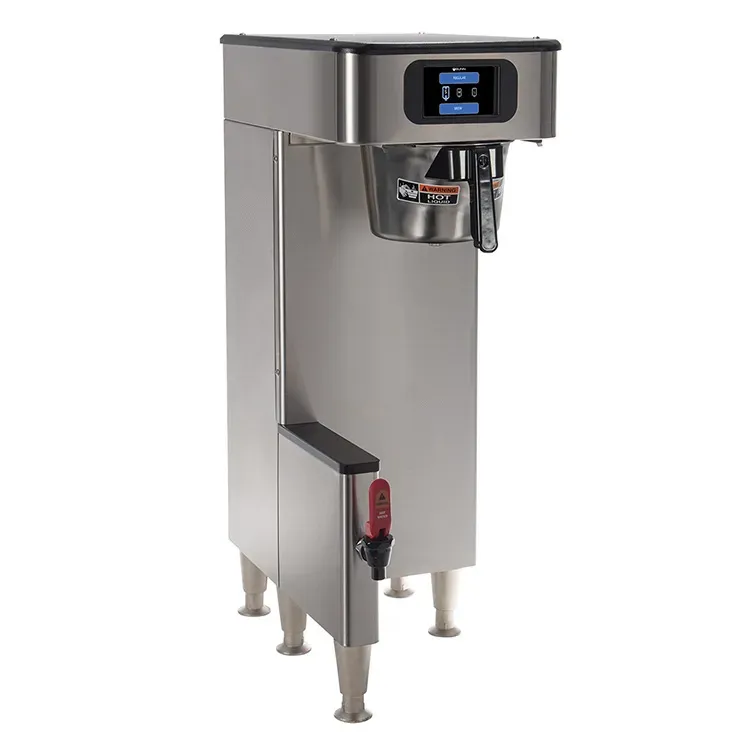 Introducing the Bunn 54300.0101 Coffee Brewer for Thermal Server, designed to modernize your restaurant's coffee brewing process for efficiency and excellence. This automatic coffee brewer is perfect for commercial restaurant use, allowing you to effortlessly serve delicious coffee to your customers. Equipped with smartWAVE sprayhead technology, it ensures optimal extraction and flavor in every brew. The 4.3" touchscreen and programmable digital display make it easy to customize brewing settings, while the USB port and wireless interface enable seamless updates and communication. With an energy-saver mode and electronic funnel lock, this coffee brewer is both eco-friendly and secure. Its stainless steel finish and satin nickel legs add a touch of elegance to any establishment. UL and NSF certified, this coffee brewer guarantees safety and reliability. Upgrade your coffee brewing experience with the Bunn 54300.0101 Coffee Brewer for Thermal Server.