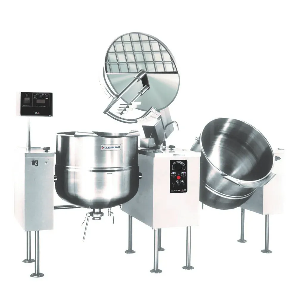 Introducing the Cleveland TMKDL40T Kettle Mixer, Twin Unit, Direct a game-changer for commercial restaurants looking to maximize efficiency in the kitchen. With its twin 40-gallon capacity and 2/3 steam jacket design, this kettle mixer is built to handle high-volume cooking with ease. The direct, sweep, and fold agitator ensures thorough mixing, while the variable speed control allows for precise adjustments to achieve the perfect consistency. The two-piece cover with a screen keeps your ingredients contained and allows for easy monitoring. Plus, the H/C faucet and 3" butterfly valve make draining and dispensing a breeze. Made with durable stainless steel construction and an open leg base, this kettle mixer is built to withstand the demands of a busy commercial kitchen. Trust Cleveland for top-quality equipment that delivers exceptional performance every time.