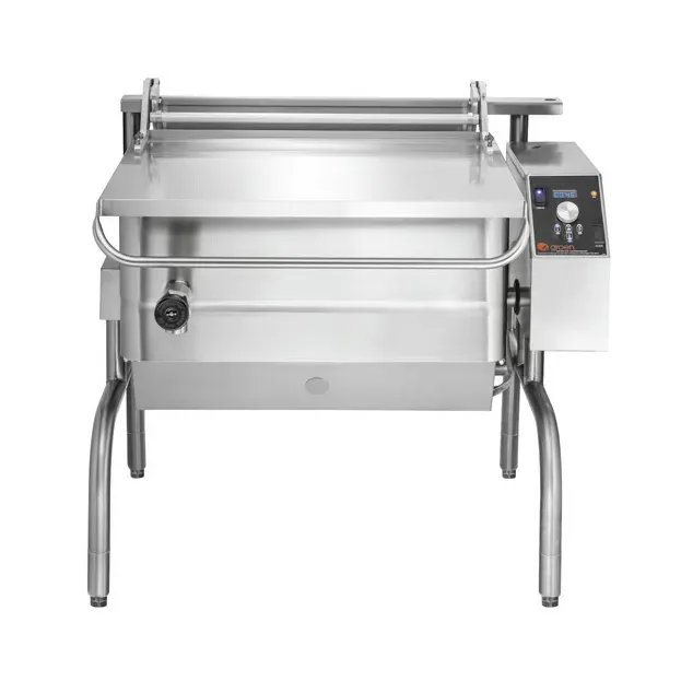Seamless tool for crafting exceptional dishes. Introducing the Groen BPP-30EA Tilting Skillet Braising Pan, Electric. Designed for commercial restaurant use, this 30-gallon capacity braising pan is a game-changer in the kitchen. With its 10" deep pan and 38" pan height, it offers ample space for cooking large quantities of food. The IPX6 water-rated electronic Advanced controls with a digital display allow for precise temperature control, ranging from 175 to 400F, ensuring consistent and delicious results every time. The 1-minute to 10-hour timer and manual setting capability provide flexibility and convenience. The power tilt feature makes it easy to pour out contents, while the standard etch marks, faucet bracket, and vent cover add to its functionality. Made in the USA with stainless steel construction, this braising pan is built to last. Upgrade your restaurant kitchen with the Groen BPP-30EA and elevate your culinary creations to new heights.