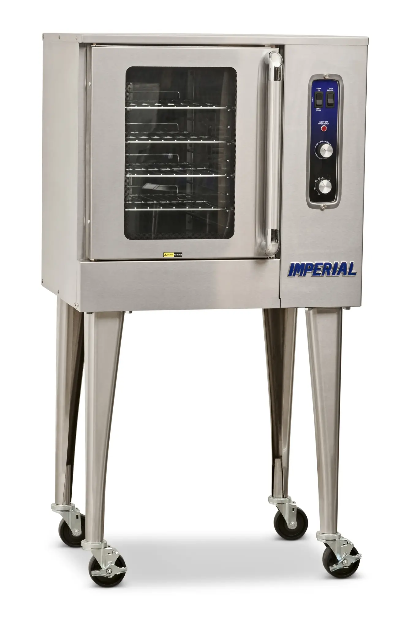 Boost your restaurant's performance with the Imperial HSICVE-1 Electric Convection Oven. This half-size oven is designed to meet the demands of a busy commercial kitchen. With its manual controls and one-speed fan motor, you have complete control over the cooking process. The hinged door with a window allows you to easily monitor your dishes without opening the oven, ensuring consistent cooking results. The oven comes with four racks, providing ample space for multiple dishes to be cooked simultaneously. The interior lights illuminate the oven cavity, making it easy to see your food as it cooks. Made with stainless steel front, sides, door, top, and legs, this oven is not only durable but also easy to clean. With its 1/2 HP motor, cETLus, ETL-Sanitation, and CE certifications, you can trust the Imperial HSICVE-1 Electric Convection Oven to deliver reliable performance in your commercial restaurant.
