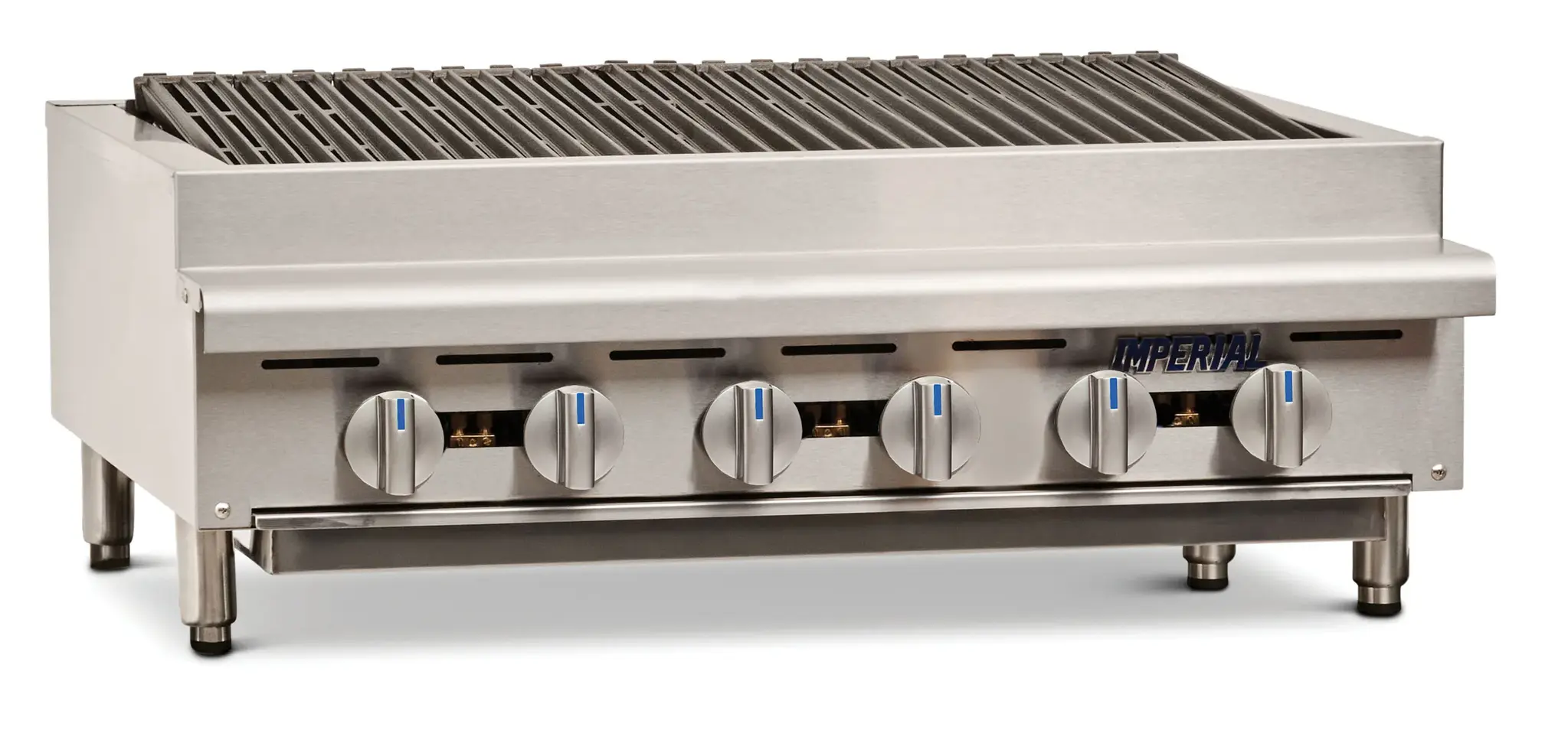 Unleash gastronomic brilliance with the Imperial, IRB-30, Charbroiler, Gas, Countertop. This high-quality charbroiler is designed to meet the demands of a busy commercial restaurant kitchen. With its cast iron radiants and slanted top grates, it ensures even heat distribution and perfect grill marks on your meats and vegetables. The full-width grease gutter and removable drip pan make cleaning a breeze, allowing you to maintain a clean and efficient workspace. The stainless steel burners, front, sides, and landing ledge not only provide durability but also add a sleek and professional look to your kitchen. The adjustable feet and 4" legs allow for easy installation and customization to fit your countertop height. With a powerful 75000 BTU, this charbroiler delivers exceptional performance and efficiency. Trust in the Imperial, IRB-30, Charbroiler, Gas, Countertop to elevate your culinary creations and impress your customers.