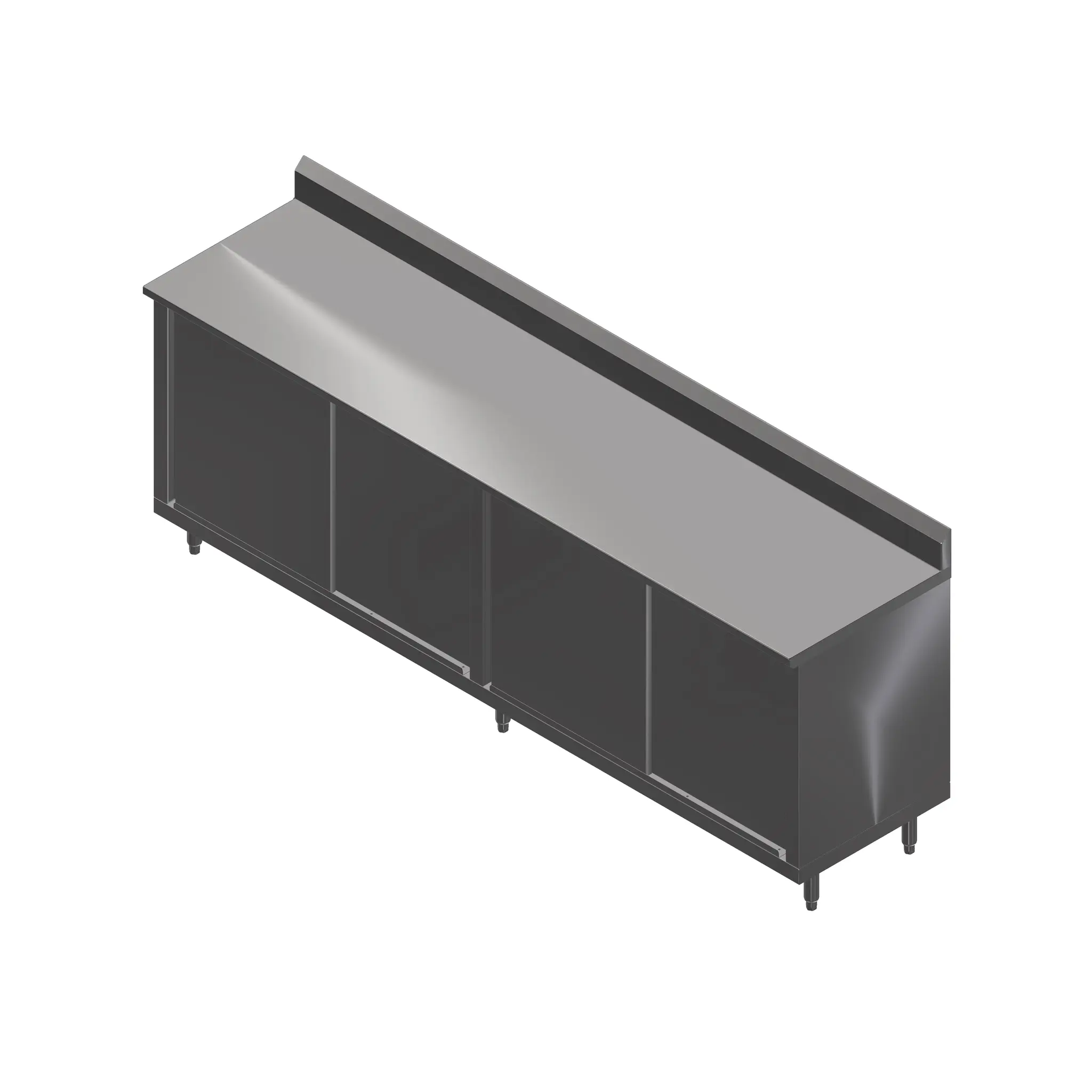 Enhance workflow with intelligent solutions through the John Boos 4CS6R5-2496 Work Table with Cabinet Base and Sliding Doors. Designed specifically for commercial restaurant use, this work table offers a spacious 96W x 24D stainless steel top with a 5-inch backsplash, providing ample space for food preparation and plating. The Stallion Safety Edge front ensures safety and prevents accidents in a fast-paced kitchen environment. The cabinet base with sliding doors allows for convenient storage of kitchen essentials, keeping them within easy reach. The 18430 stainless steel body and stainless steel legs with adjustable feet ensure durability and stability, even in the busiest of kitchens. With its sleek design and practical features, this work table is a must-have for any commercial restaurant looking to optimize workflow and efficiency. Trust John Boos, a reputable vendor known for their high-quality products, to deliver exceptional solutions for your restaurant needs.