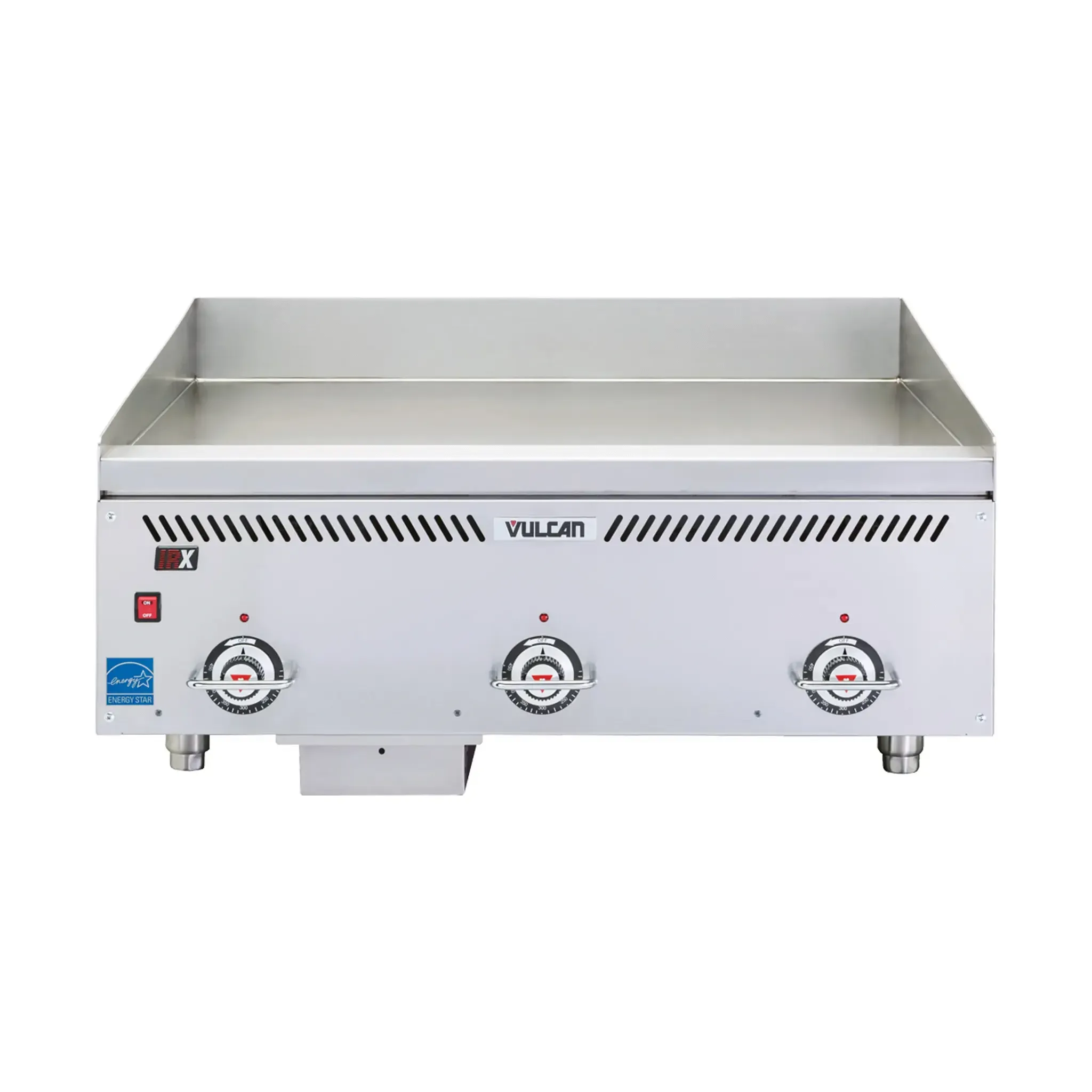 Take your kitchen to the next level with the Vulcan VCCG72-IS Gas Countertop Griddle. This heavy-duty griddle is designed to meet the demands of a commercial restaurant kitchen. With a spacious 72" W x 24" D cooking surface and a 1" thick steel plate, this griddle provides even heat distribution and excellent heat retention. The griddle features six burners and solid state thermostats every 12 inches, allowing for precise temperature control. The innovative IRX infrared burner technology ensures quick and efficient cooking, while the electronic spark ignition and pilot protection provide added safety. The griddle also comes with wire knob guards and two drawers for convenient storage. Made with stainless steel front, sides, and front top ledge, this griddle is built to withstand the rigors of a busy kitchen. The front grease trough and back and tapered side splashes make cleaning a breeze. With 144,000 BTU of power, this griddle is NSF and CSA certified, guaranteeing its quality and performance. Upgrade your kitchen with the Vulcan VCCG72-IS Gas Countertop Griddle and experience professional-grade cooking at its finest.