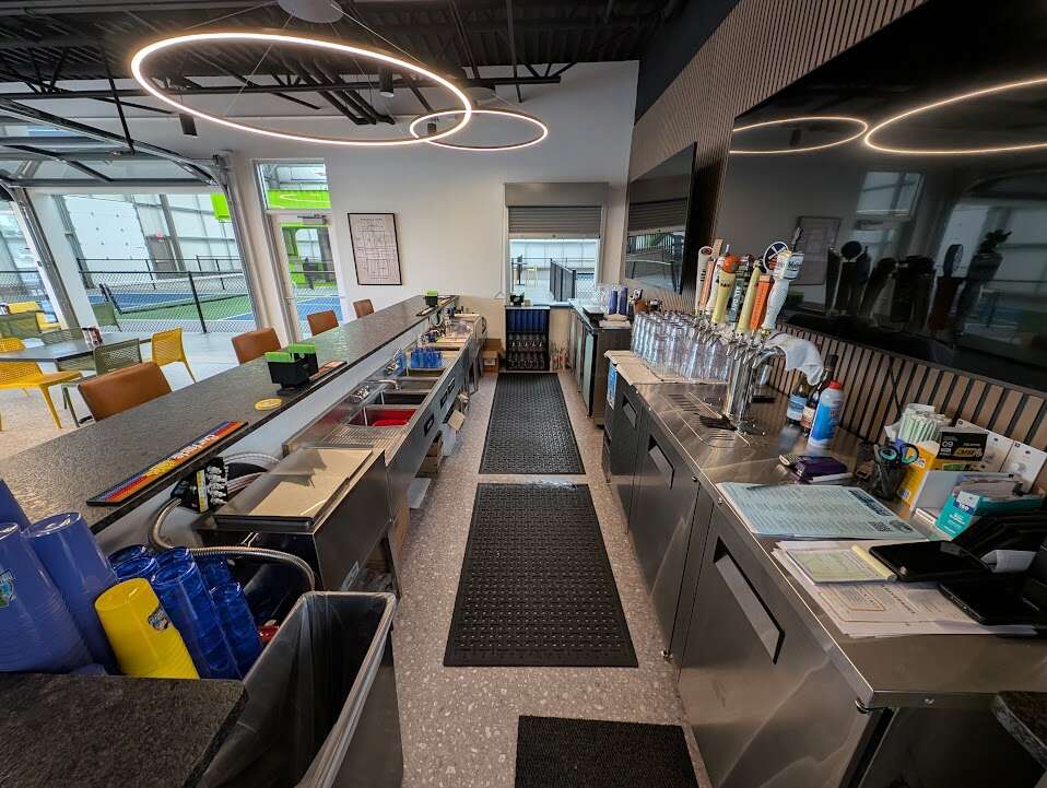 We fully designed and outfitted the bar and kitchen spaces, including the hood and walk-in cooler. Dinks and Dingers is now using their kitchen to pump out food for hundreds of hungry athletes and casual pickleballers alike.